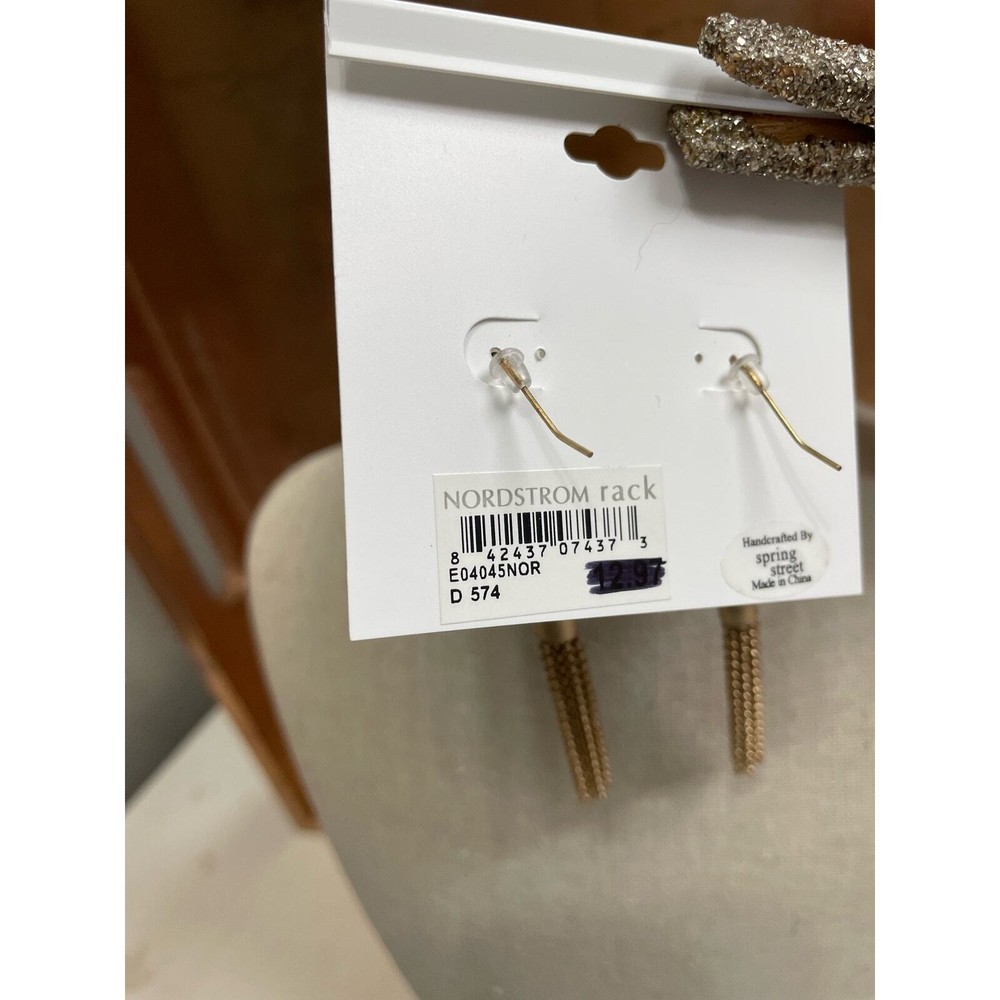 New with tags, Nordstrom Brand Spring Street the Collection Matte Gold Texture Disc & Chain Tassel Earrings. Handcrafted by spring street. Earrings length is 3".