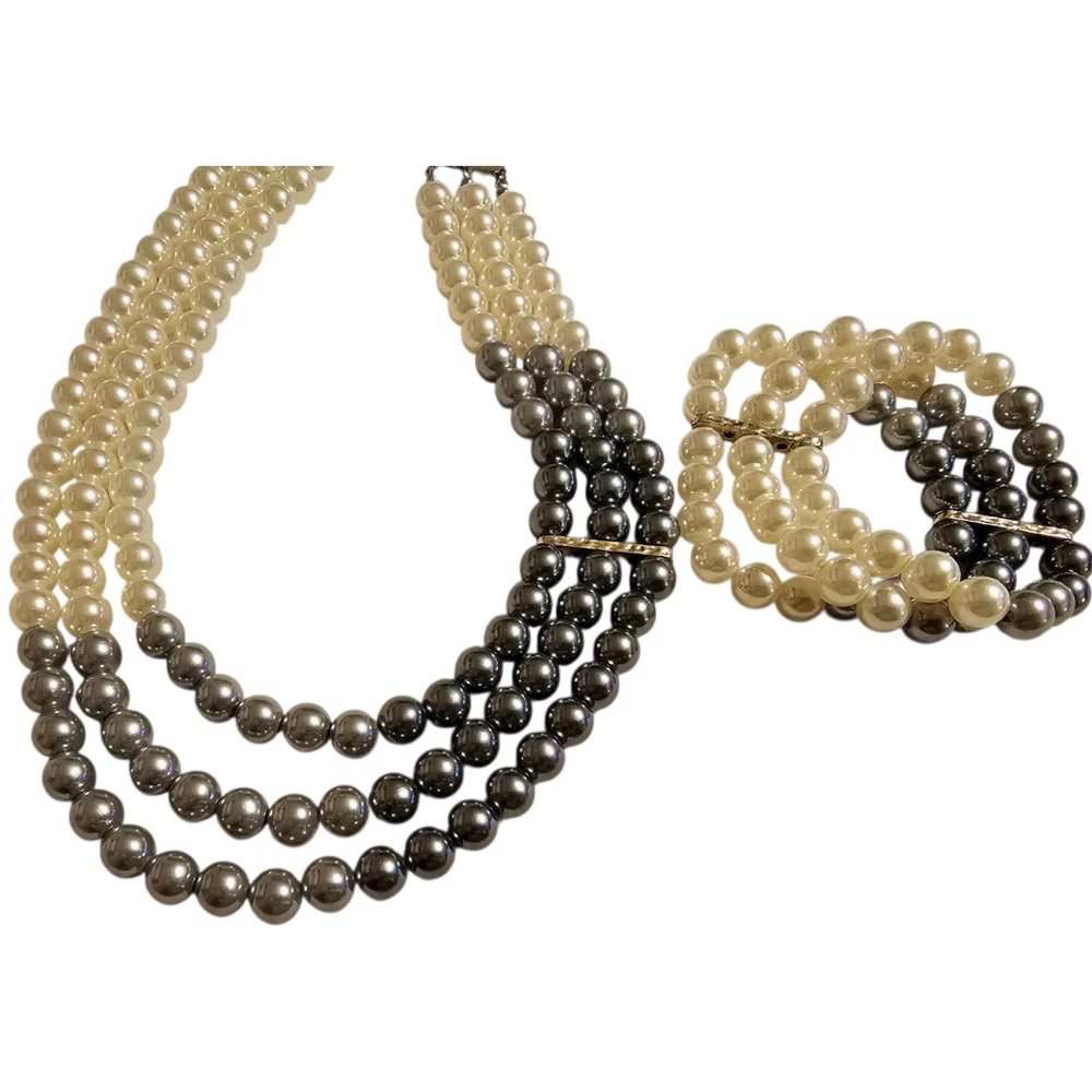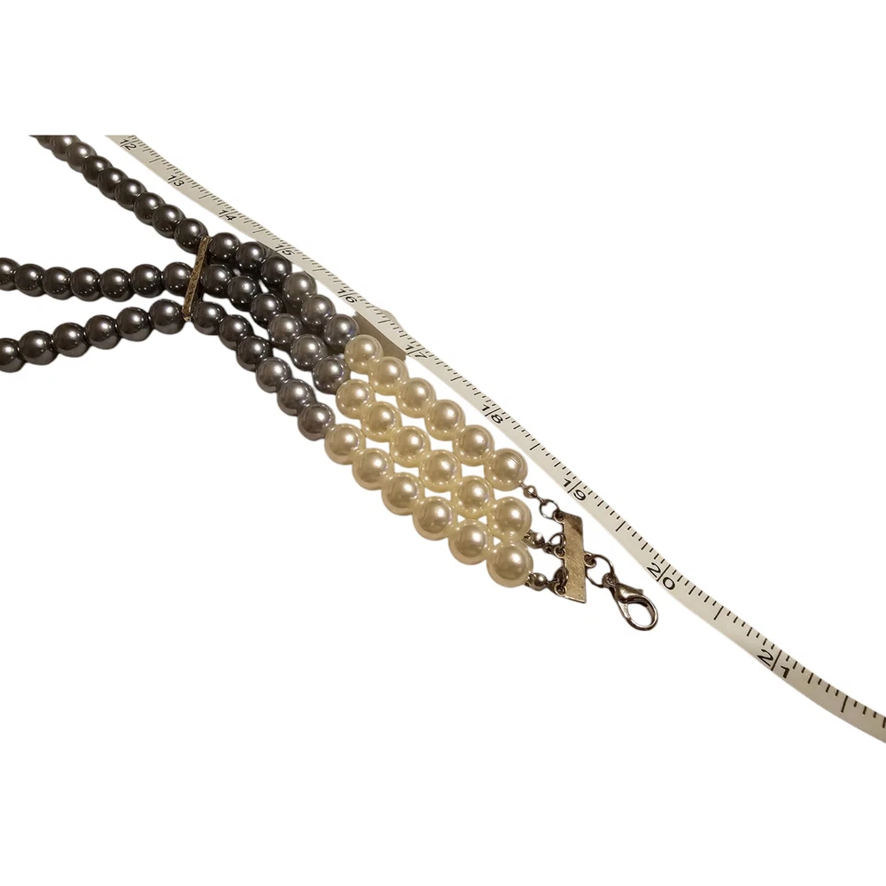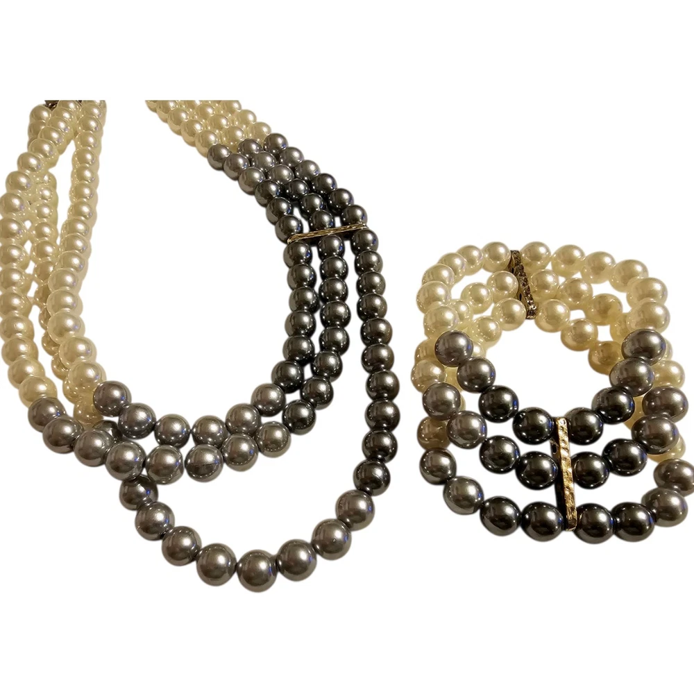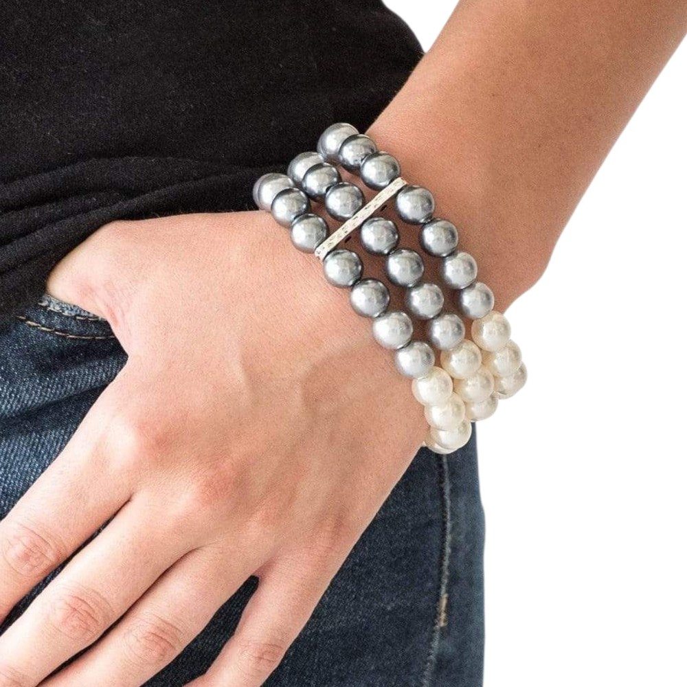 ✨️Paparazzi Faux Pearl Jewelry Set ✨️Includes: 3 strand adjustable necklace, 3 strand stretch bracelet, and earrings ✨️Times Square Starlet Necklace and Earrings Set: Joined together by a hammered silver fitting, strands of white, silver, and dark gray pearls cascade below the collar, creating an elegant ombre effect. Features an adjustable clasp closure. ✨️Central Park Celebrity Bracelet: Joined together by a hammered silver fitting, white, silver, and dark gray pearls are threaded along with stretchy bands, creating an elegant ombre effect around the wrist. ✨️Measurements shown in photo is from end to end with necklace open ✨️Beautiful white, gray, and black set ✨️New, never Worn but bracelet is missing tag ✨️Colors may appear different because of camera and/or screen quality ❤️From a smoke-free, pet-loving home but pets are kept away from my items. Please see all photos as this is the exact item(s) you will receive in the exact condition shown❤️