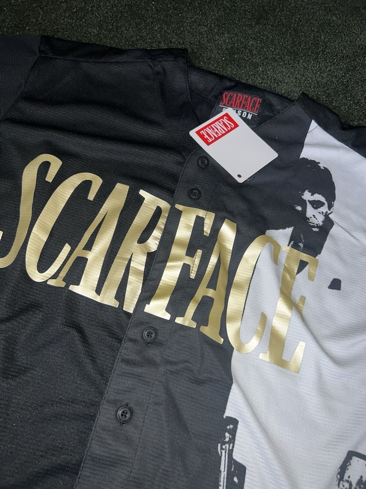 Absolutely love this Scarface jersey! The black and gold looks sharp, and the quality is top-notch for the price. Fits true to size and feels comfortable—great details like the bold text and smooth fabric make it a standout. Perfect for movie fans or collectors looking for a fresh, unworn piece. Fast shipping too—definitely recommend!