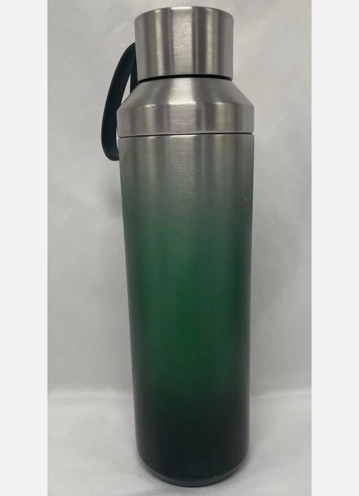 This Starbucks stainless steel water bottle is the perfect addition to any collection. With a 20 oz capacity, it's perfect for on-the-go use. The green ombré design adds a pop of color to any outfit. The rubber hook ensures it stays securely in place. It has a clever design that can unscrew in the middle to be used as a cup. Keeps liquid cold for up to 12 hours!