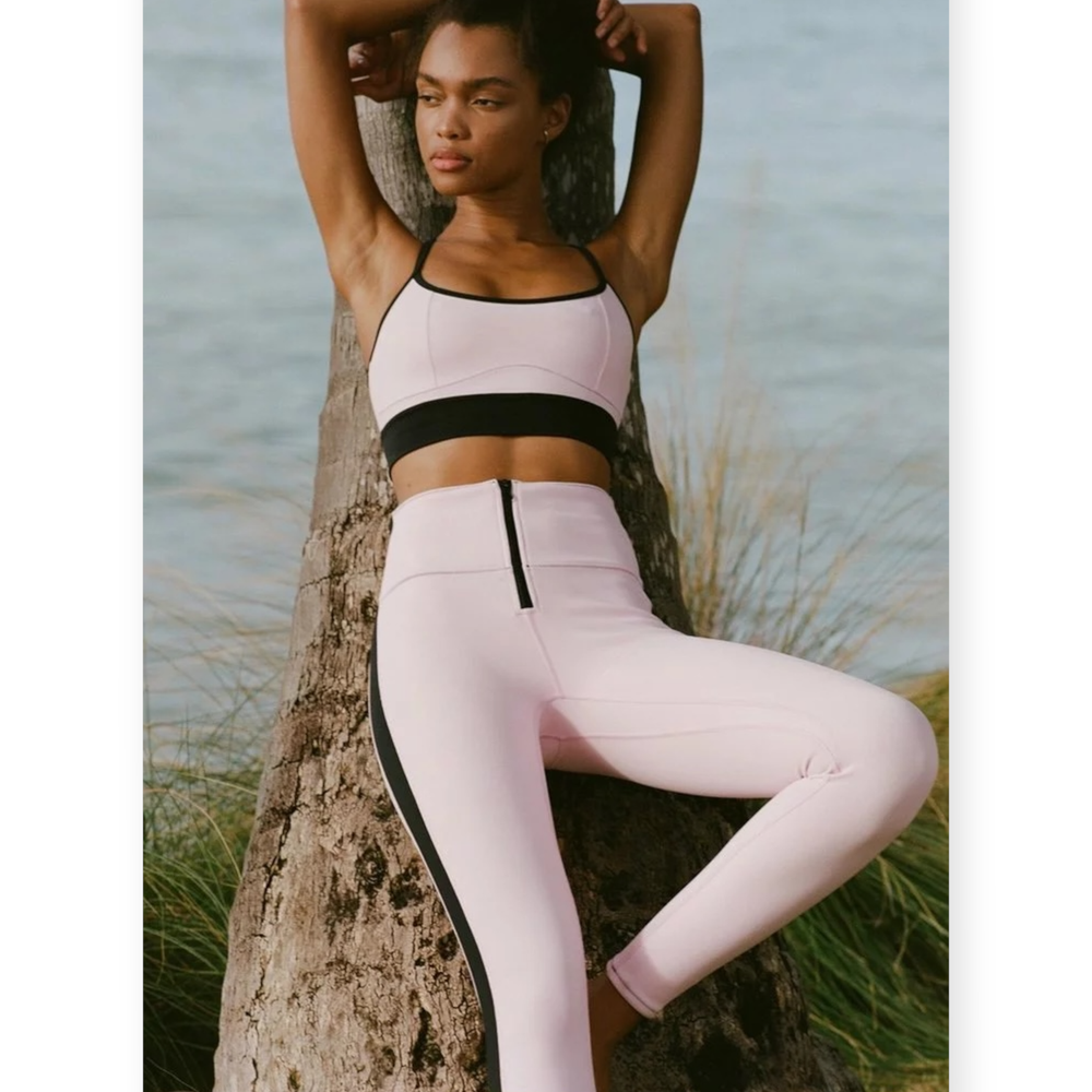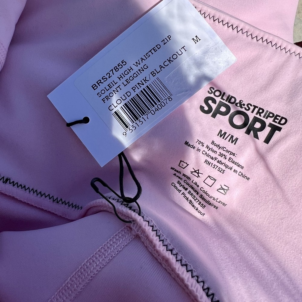 Solid & Striped Soleil High Waisted Zip Front Legging in Cloud Pink / Black Women’s Size Medium, fits Small too Condition: New with Tags, no flaws. MSRP $118 Details: - High-waisted, full length - Stretchy jersey material - Contrast side seam stripes - Pull-on, front zip closure - Back zip pocket - Logo at back ankle - Baby pink in color - 70% Nylon, 30% Elastane Approximate measurements: 27” - 30” Waist (13.5” across, 15” with stretch), 33” Hips, 10” Front Rise, 27” Inseam, 36” Length All orders ship the same or next day, open to offers Tags: Athletic, Athleisure, Activewear, Gym, Workout, Sporty, Wetsuit, Swim, Beach, Pool, Volleyball, Casual, Vacation, Sports, Gymwear, Yoga, Lululemon, Skims