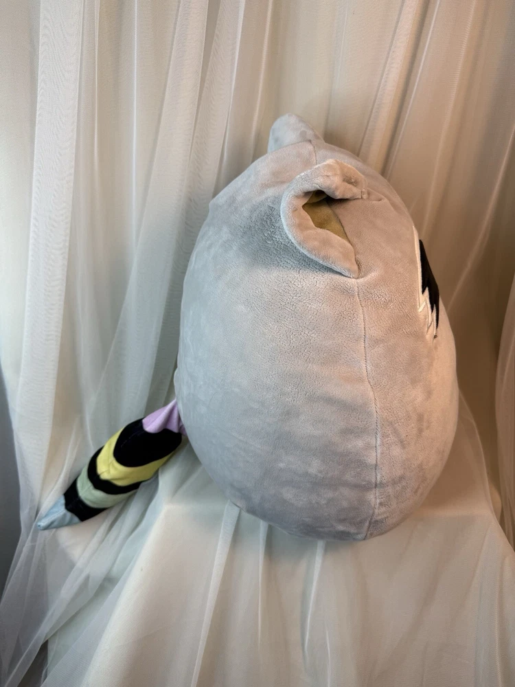 This Squishmallow plush toy features Max the Raccoon, a medium-sized stuffed animal with a gray body and colorful rainbow belly and ears. Made by Kellytoy, this plush is perfect for any occasion and suitable for children aged 3 and up. Max the Raccoon is washable and part of the Squishmallows character family. With its soft and squishy texture, this plush is perfect for snuggling and cuddling. It's recommended for children aged 8-11 years, 4-7 years, 3-4 years, 17 years & up, and 12-16 years. Add this adorable raccoon to your collection today!