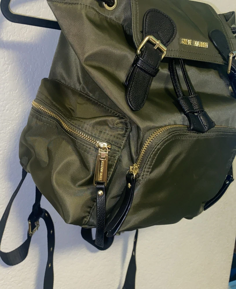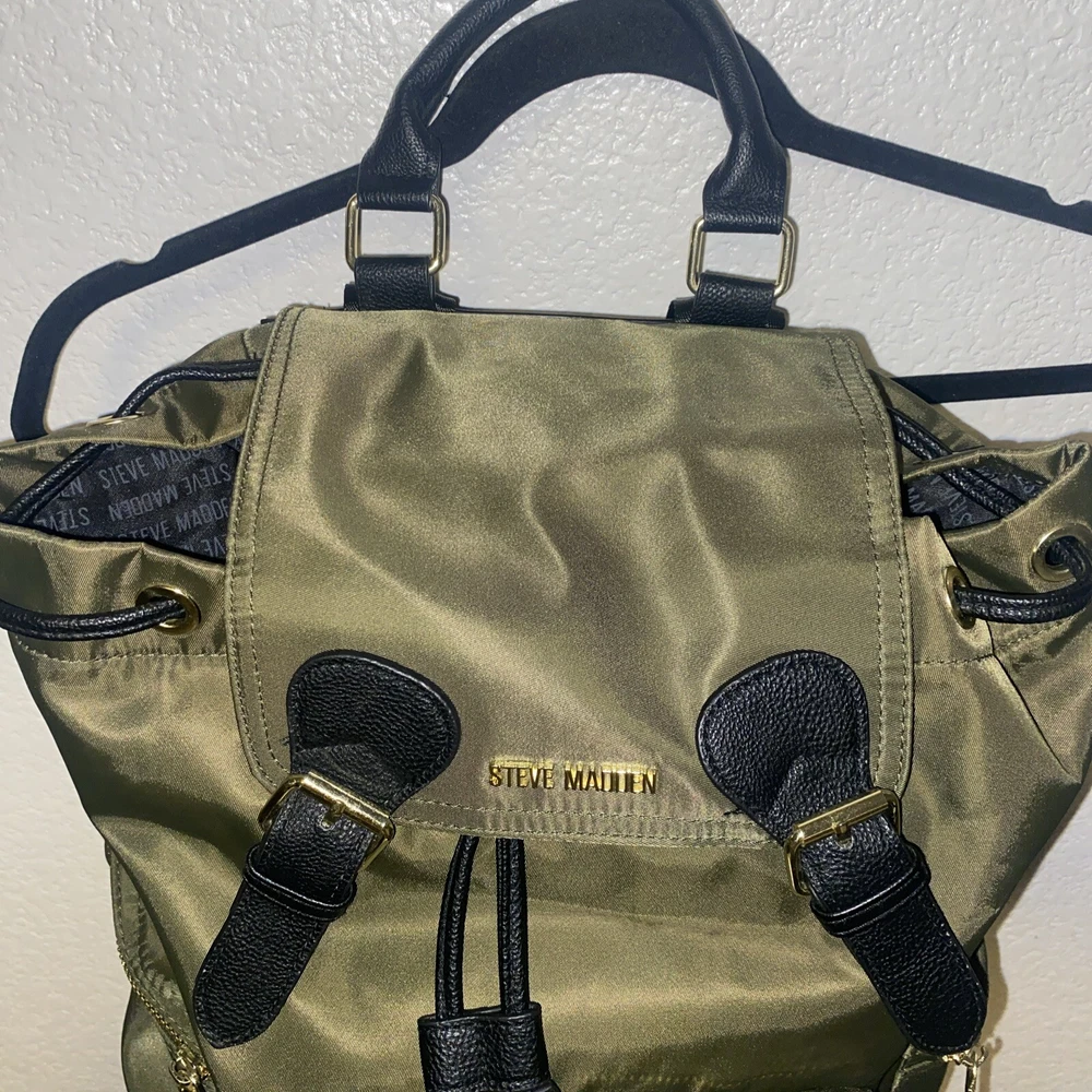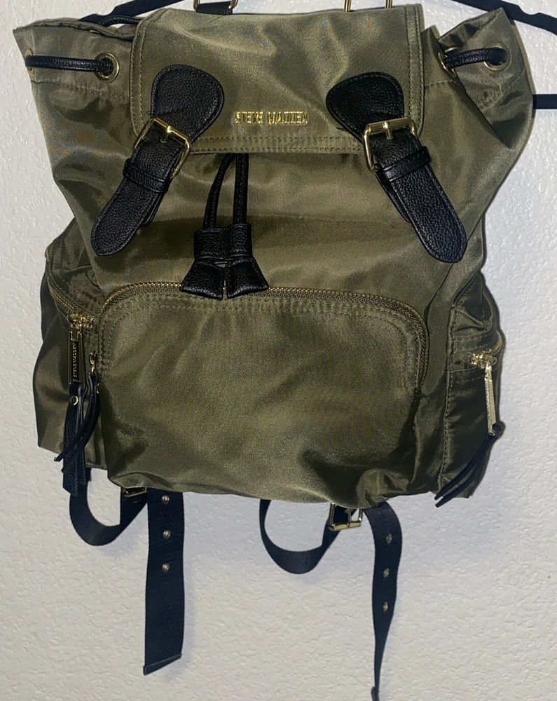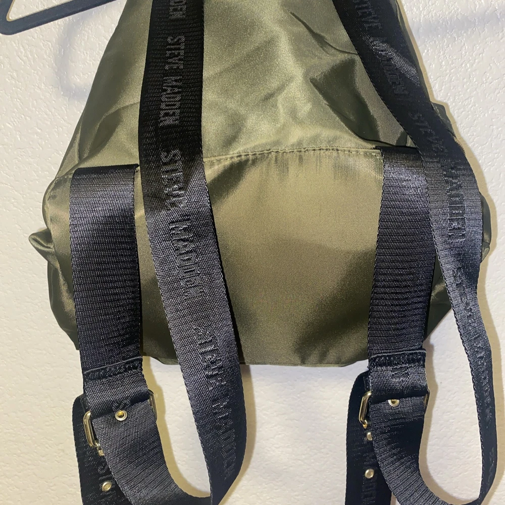 Crafted by Steve Madden, the BSOLLY Backpack offers a stylish and functional design for everyday use. In a rich olive green hue, it serves as a chic homage to the iconic Burberry look, appealing to those who appreciate fashion-forward accessories. The durable nylon exterior ensures longevity and ease of maintenance, while the adjustable straps provide a customizable fit for comfort. This backpack is more than just a trend piece; it's a practical addition to your wardrobe with its convenient adjustable strap feature. Whether you're heading to the classroom, embarking on a day trip, or simply going about your daily errands, the Steve Madden BSOLLY Backpack is designed to suit any occasion with elegance and convenience. Never use bag new with out tags