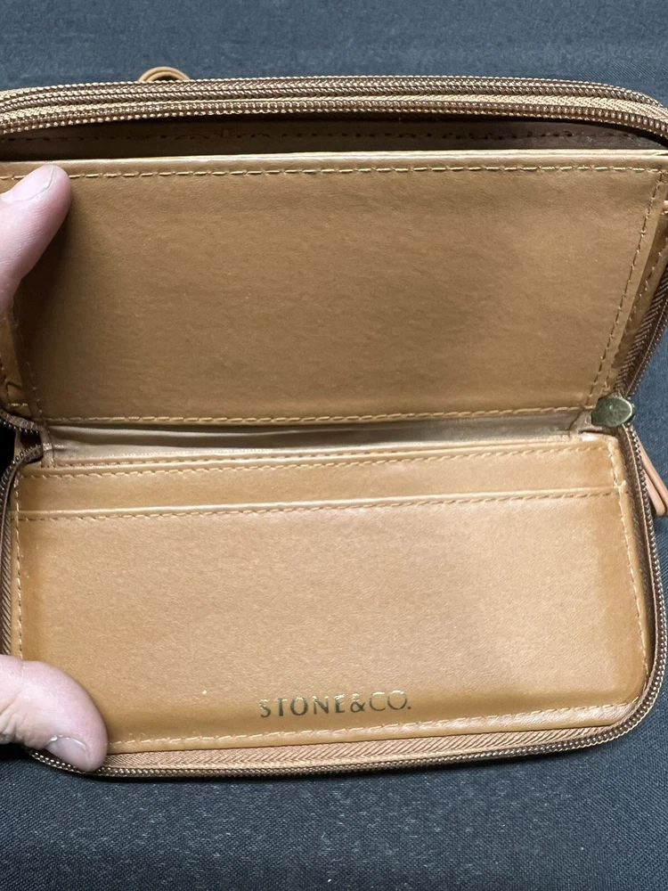 Type: Wristlet Theme: USA Material: Leather Style: Wristlet Color: Brown #1 Brand: Stone Mountain Department: Women