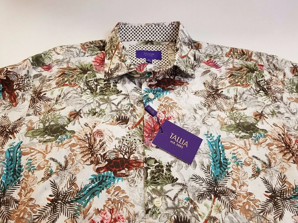 NWT!!!! Cool Design Colorful TALLIA Men Flip Cuffs Turtles Wildlife Button Front Long Sleeve Shirt, Multi-color, Size M Dress Size 15 1/2 . Condition is New with tags. Please see photos for details. Thanks for viewing!!!! Approximate Measurements Pit to pit : 22" Shoulder : 19" Sleeve length : 25" Body length : 30"
