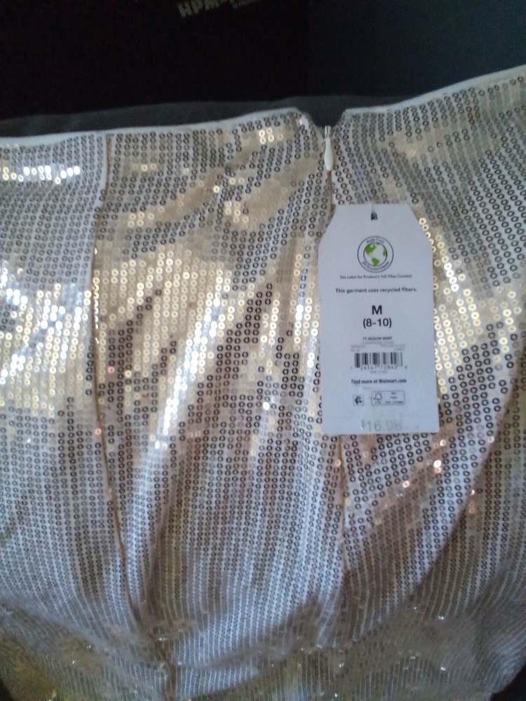 NWT Time and Tru Womens Champagne Midi Sequin Skirt with Side Slit