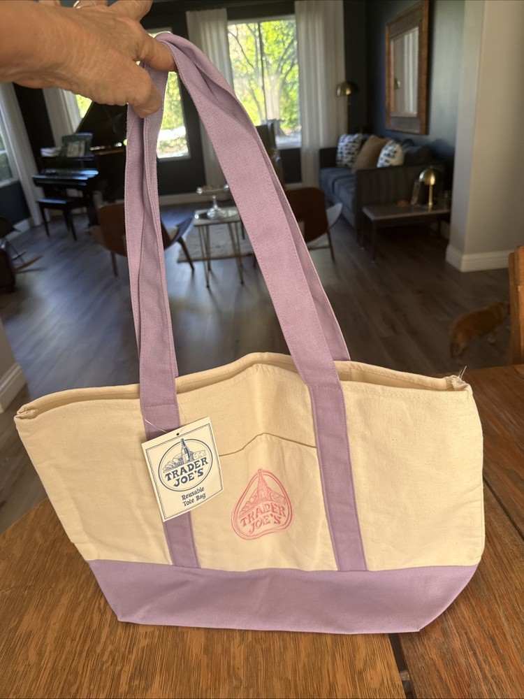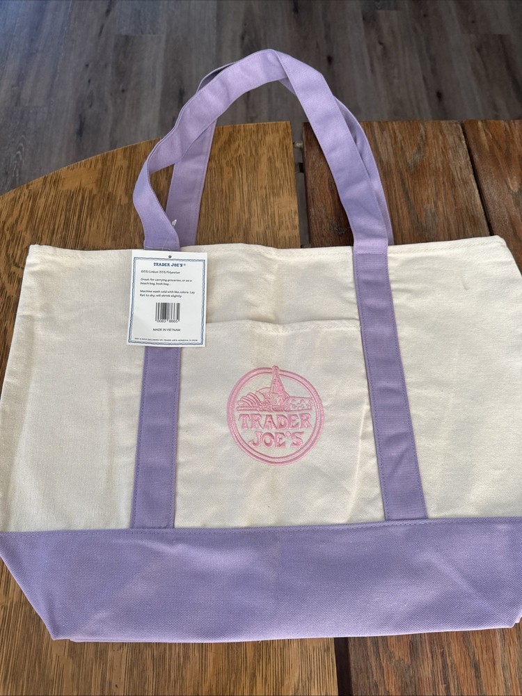 NWT Trader Joe’s Lavender Large Canvas Tote Bag Limited Release