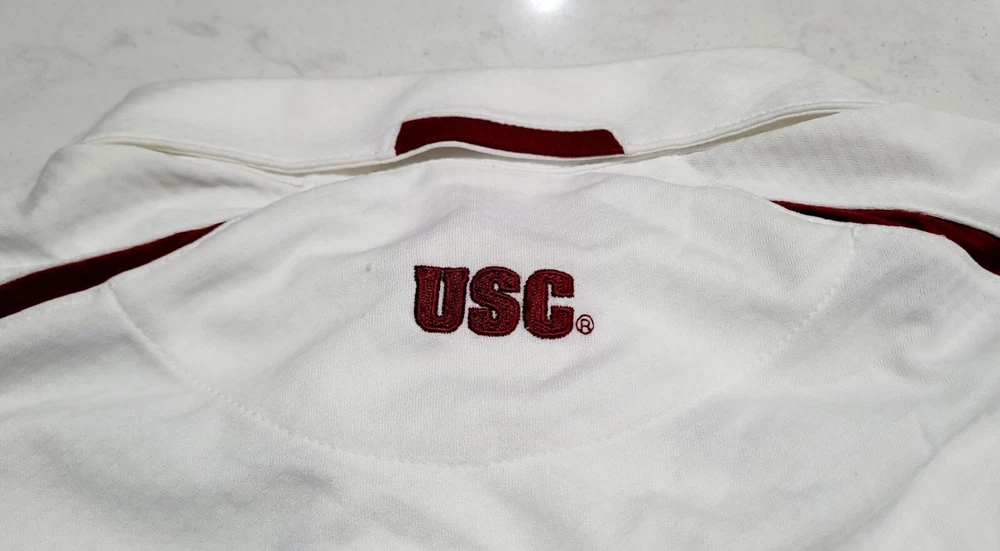 NEW WITHOUT TAGS. IN EXCELLENT CONDITION. NO STAINS OR DAMAGE. PLEASE VIEW ALL PHOTOS ABOVE FOR MEASUREMENTS AND PROOF OF CONDITION. STORED IN A CLIMATE CONTROLLED SMOKE-FREE AND PET-FREE HOME. SHIPS PROMPTLY AND SECURELY. Show off your USC Trojans pride with this authentic Nike Dri-Fit Polo in size 4XL, designed specifically for women. The white polo shirt features the official NCAA Championship logo and is officially licensed for your assurance of quality. Perfect for game day or any occasion, this basic style is ideal for any fan looking to support their favorite team. Representing the USC Trojans in style, this polo is perfect for any NCAA event or tournament. Made with high-quality materials, this Nike polo is sure to keep you comfortable and cool all day long. Don't miss out on the chance to add this piece to your collection.