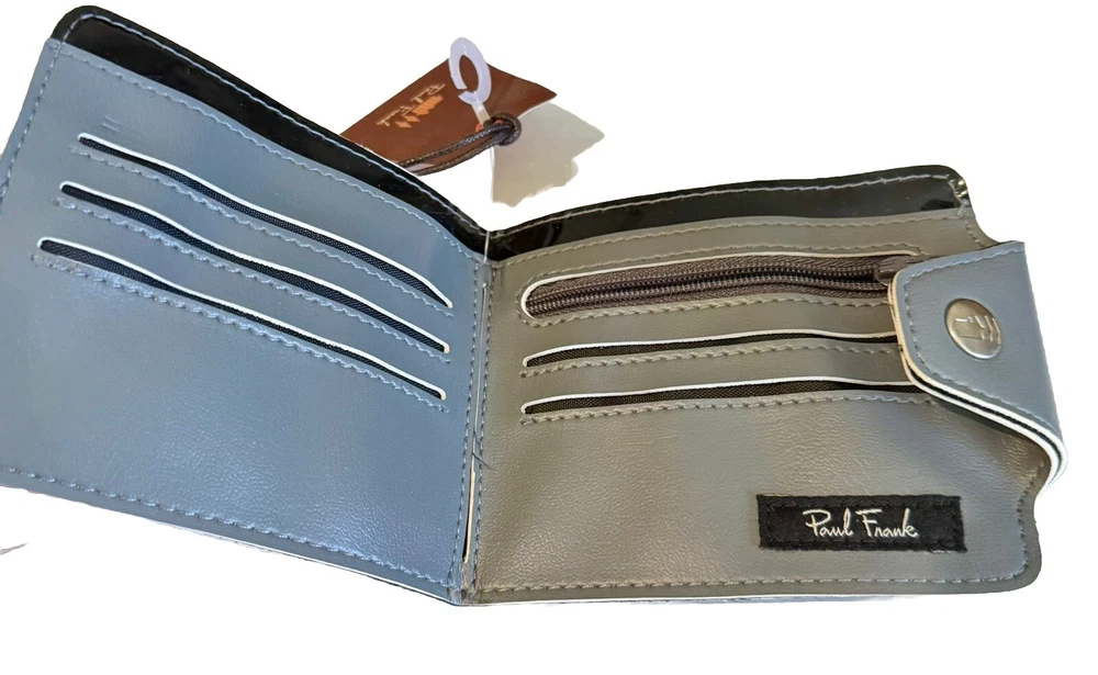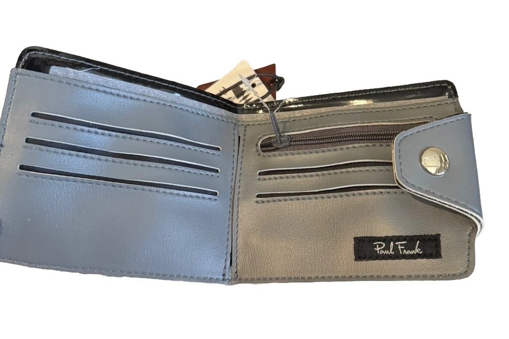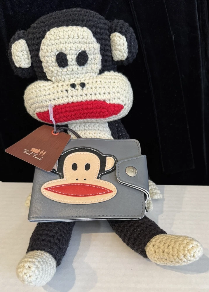 NWT-VTG Paul Frank Bifold Vinyl Snap Wallet Julius 4x4” 5 Slot With Zip Pocket. * Wallet has slight small indentation on front and back. Wallet is new with tags, and sock. Monkey is new without tags.