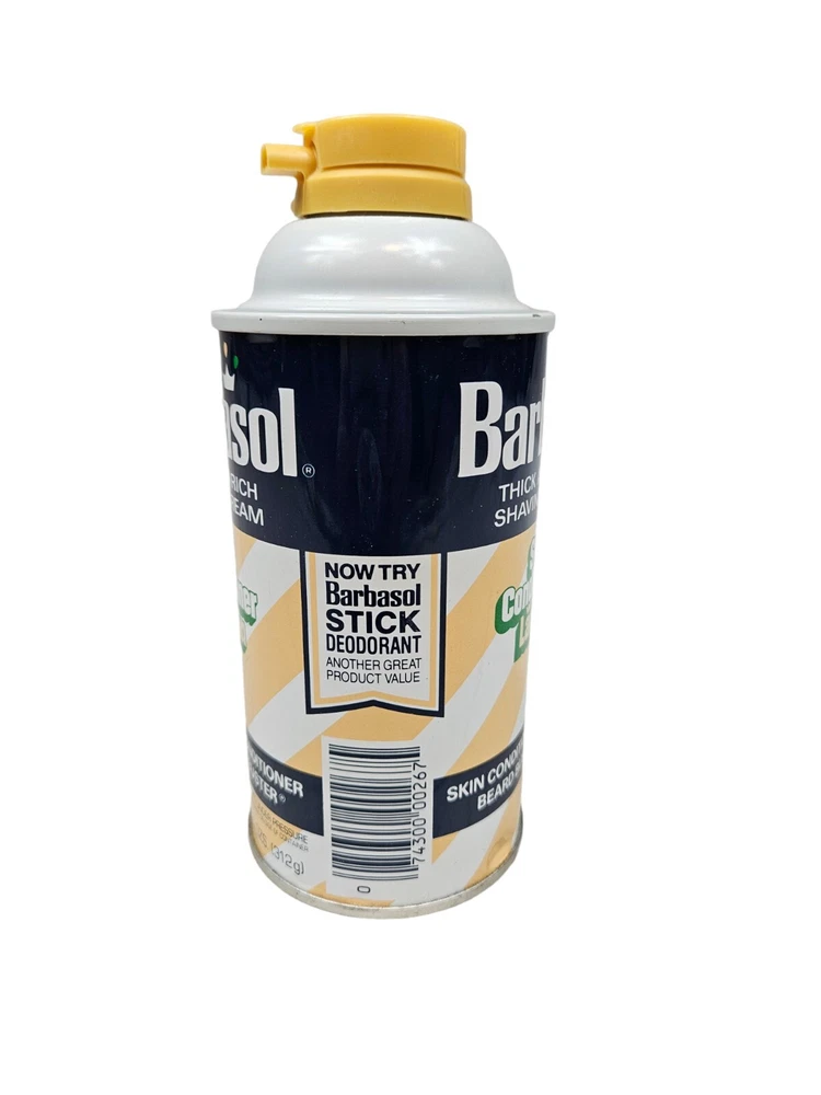 NWT Vintage Barbasol Thick & Rich Shaving Cream Skin Conditioner w Lanolin 11 oz. New NWT Vintage Barbasol Thick & Rich Shaving Cream Skin Conditioner w Lanolin 11 oz Can Discontinued Barbasol Thick & Rick Shaving Cream Beard Buster with Skin Conditioner and Lanolin. Lanolin works by reducing water loss from the skin, similar to petroleum jelly. Very moisturizing. Unisex shaving cream. This item is new and unused.