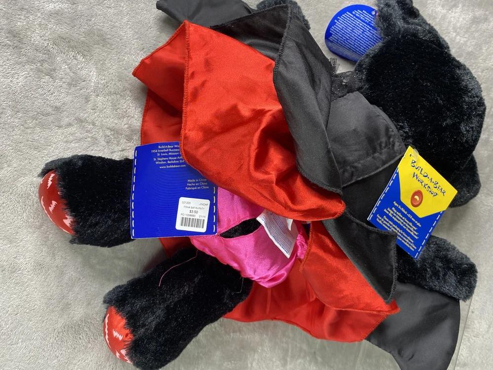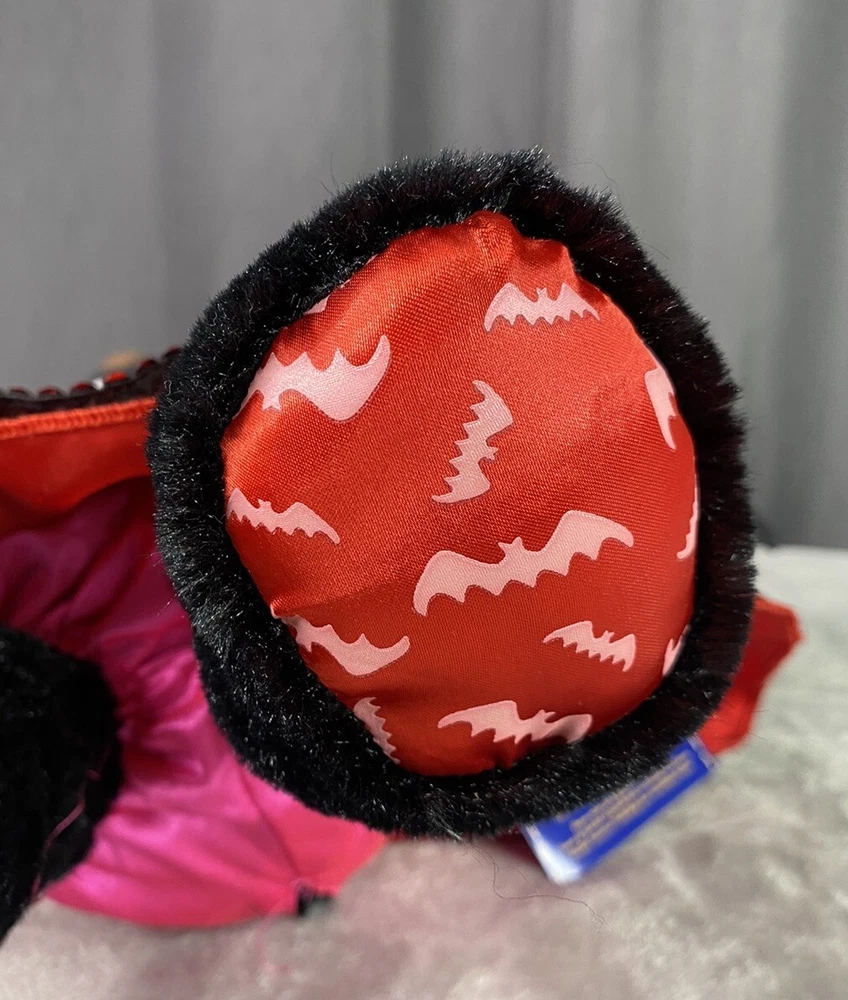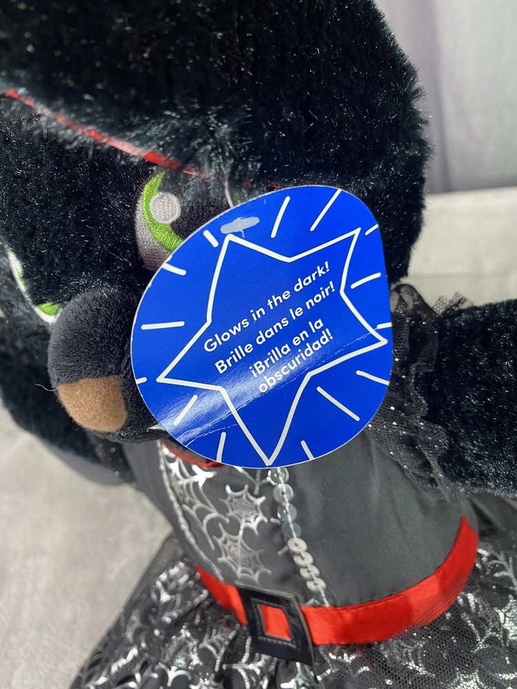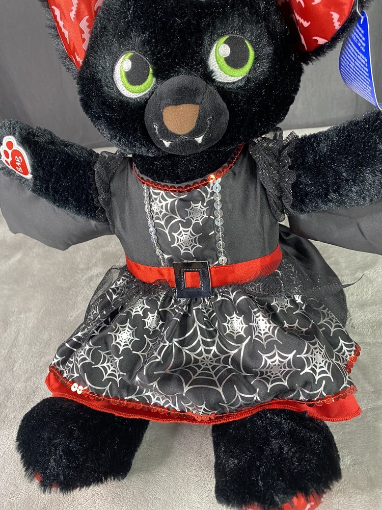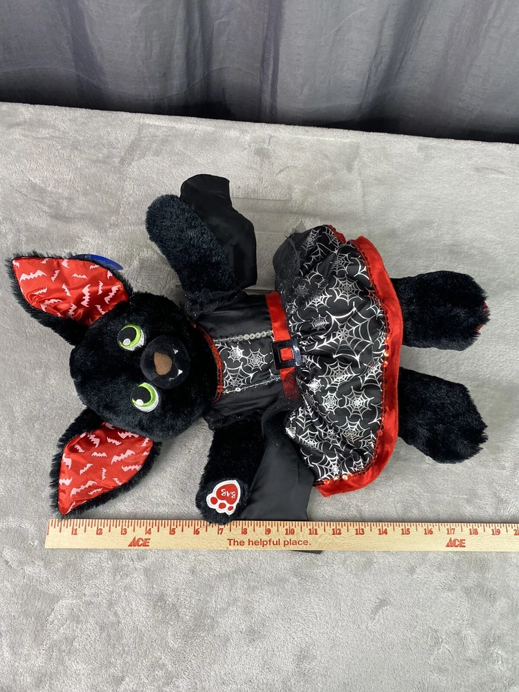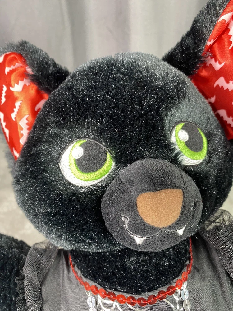 Build A Bear Boorific Black Vampire Bat Plush Animal 18” Red Ears And Feet BABW