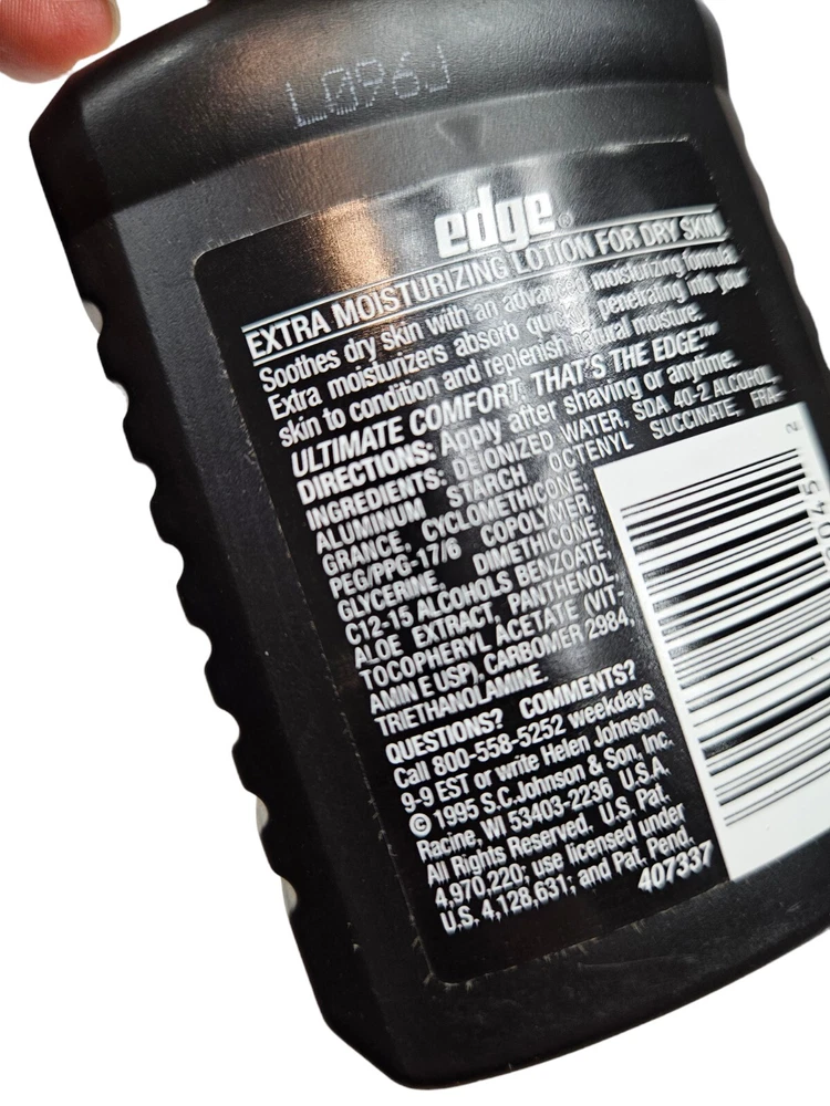 NWT Vintage Edge Fresh Scent Extra Moisturizing After Shave Lotion 3 fl oz New NWT Vintage Edge Fresh Scent Extra Moisturizing After Shave Lotion 3 fl oz Vintage 1995 Edge Fresh Scent Extra Moisturizing After Shave Lotion with Light Alcohol Soothes dry skin with an advanced moisturizing formula. Extra moisture absorbs quickly, penetrating into your skin to condition and replenish natural moisture. This item is new and unused.