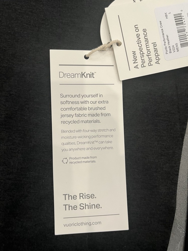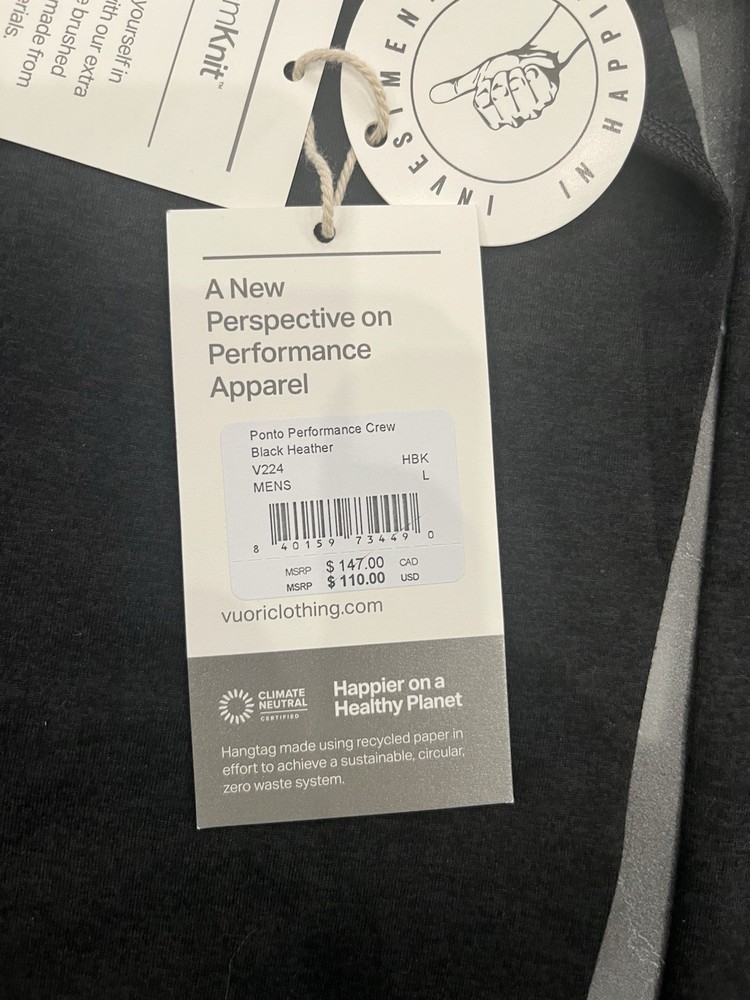 Pit to pit is 22 and length is 28 The NWT Men's Vuori Ponto Performance Crew in Black Heather, size Large, is a high-quality activewear top designed for men. With a crew neckline, this shirt offers a comfortable fit and stylish look, making it perfect for active occasions. The black color adds versatility to its design, allowing it to be easily combined with other pieces for a coordinated outfit. Built by the brand Vuori, known for their sustainable and functional clothing, this performance crew is sure to provide both style and performance for the modern man on the go.