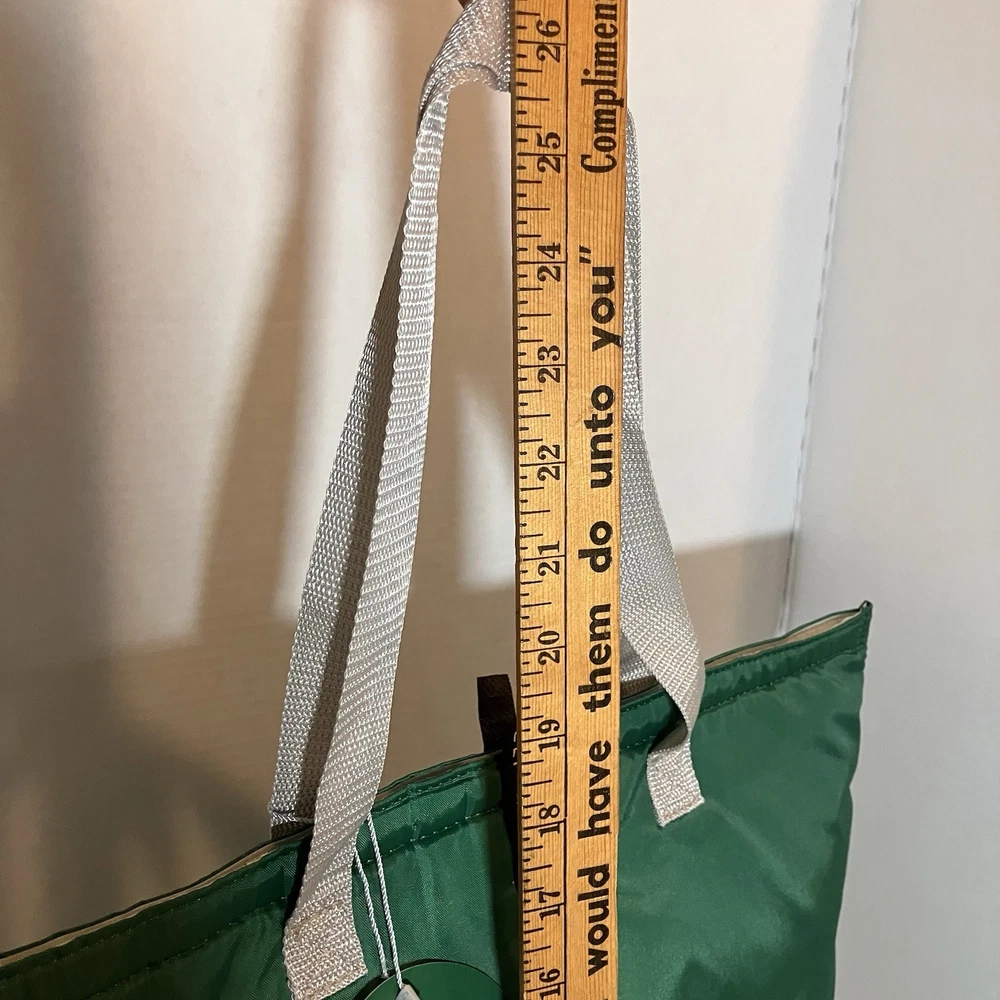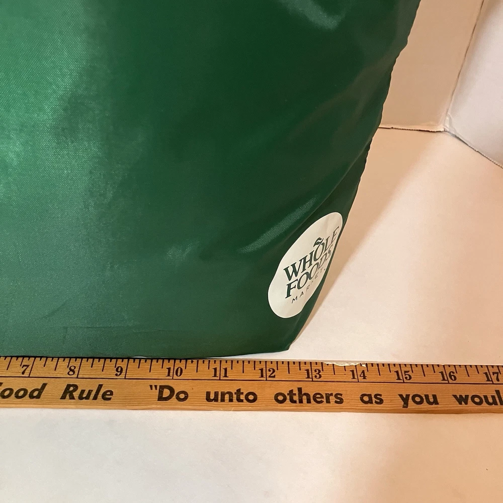 Features:Zipper, Zipper/ Insulated for Hot and ColdBrand:Whole FoodsColor:GreenItem Width:6 inType:Reusable Shopping BagsNumber in Pack:1Personalize:NoOriginal/Reproduction:OriginalNumber of Items in Set:1Item Length:13 inSize:LargeMaterial:Polyester, Vinyl Acetate LiningItem Height:18 inPattern:Solid