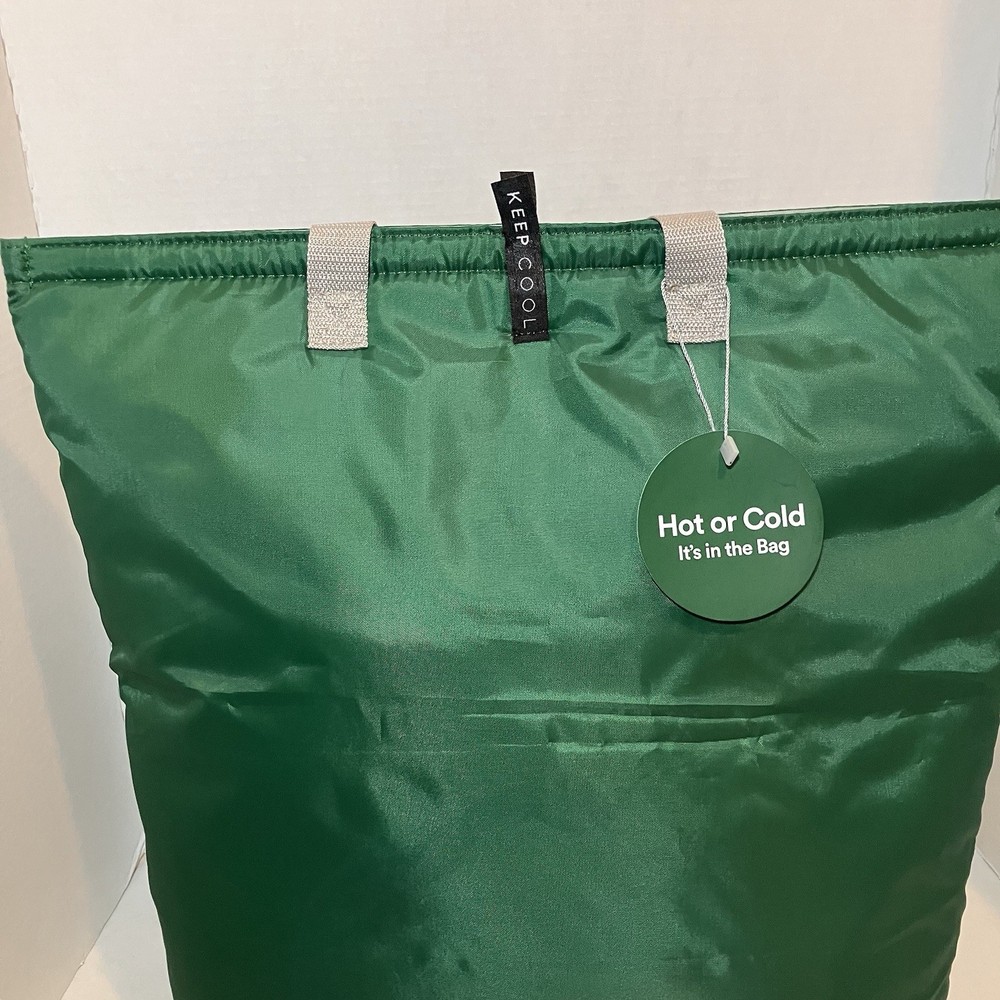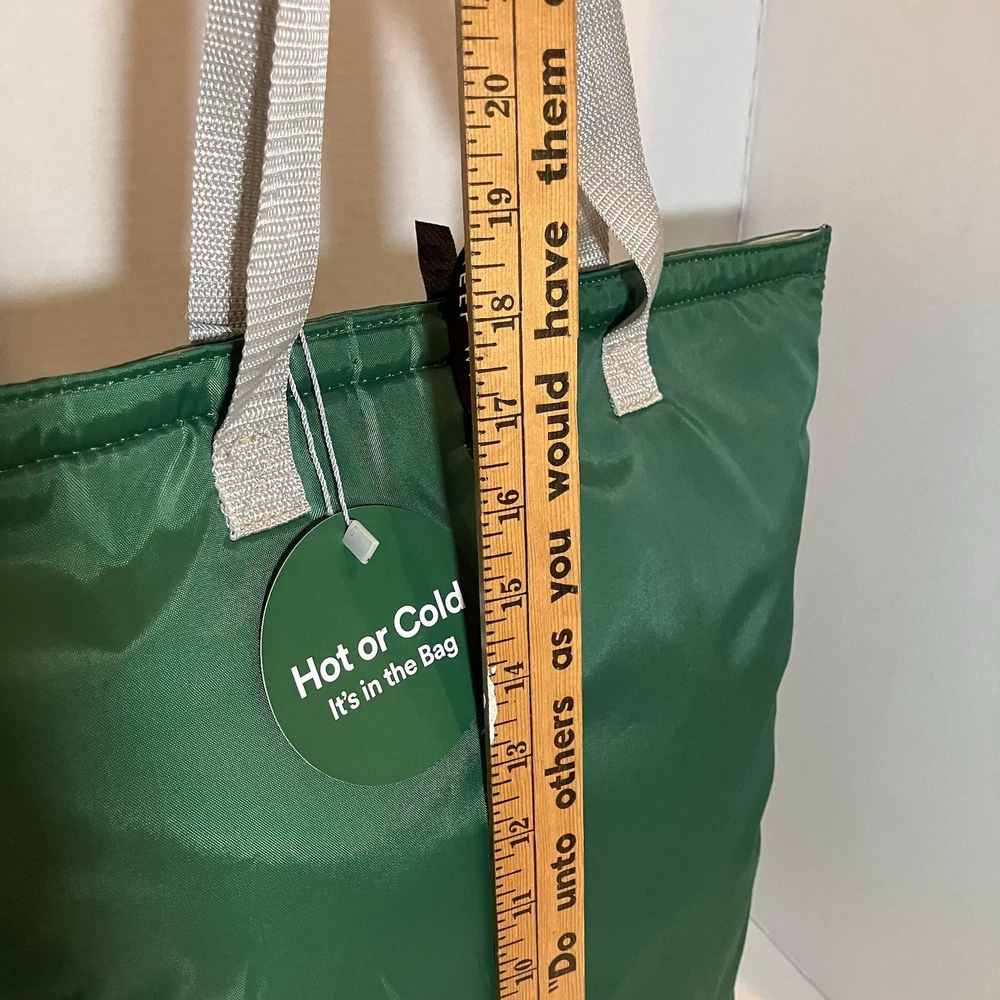 NWT WHOLE FOODS Lg Green Reusable Insulated Hot or Cold Shopping Bag Zipper Top