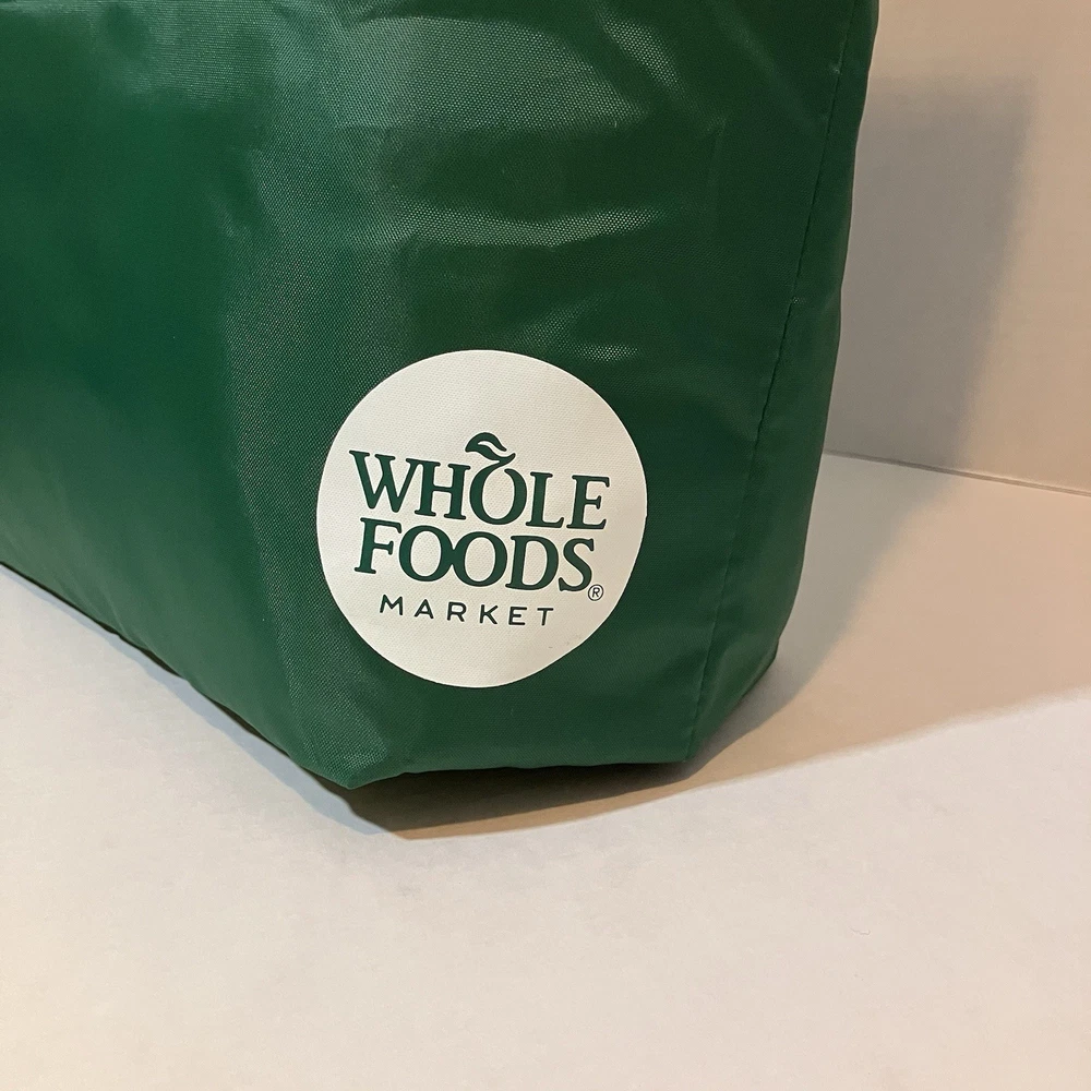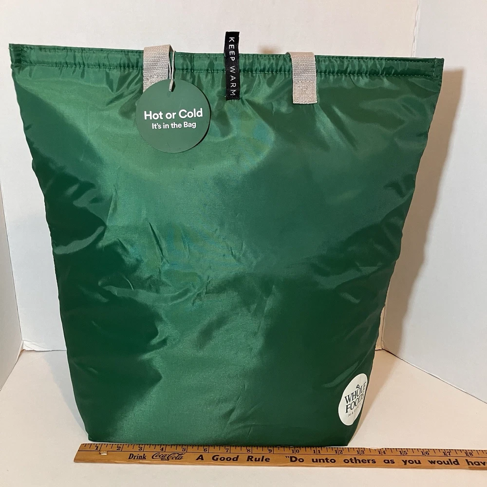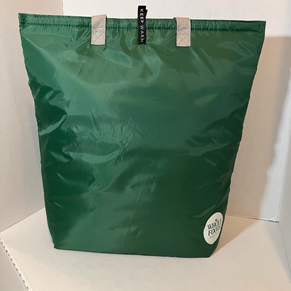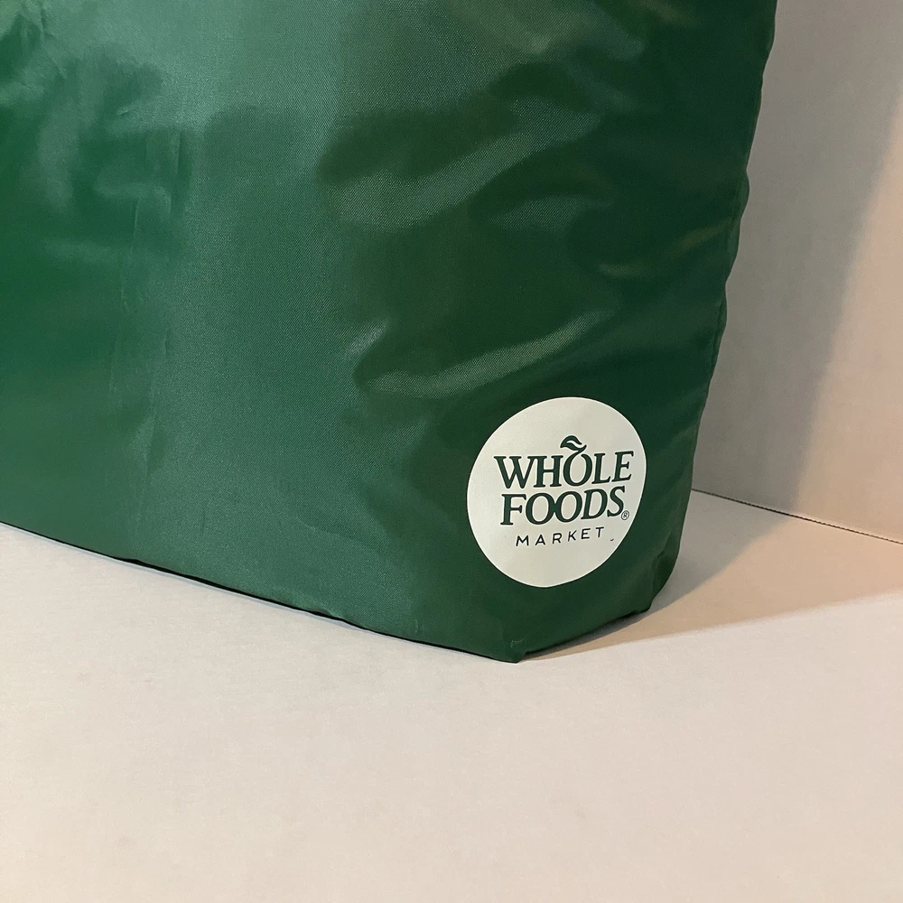 HomeNWT WHOLE FOODS Lg Green Reusable Insulated Hot or Cold Shopping Bag Zipper Top