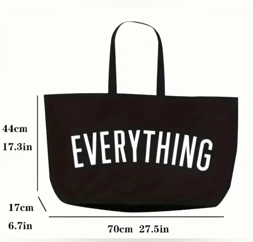 NWT WOMEN'S CANVAS TOTE BAG- "EVERYTHING"- BLACK AND WHITE