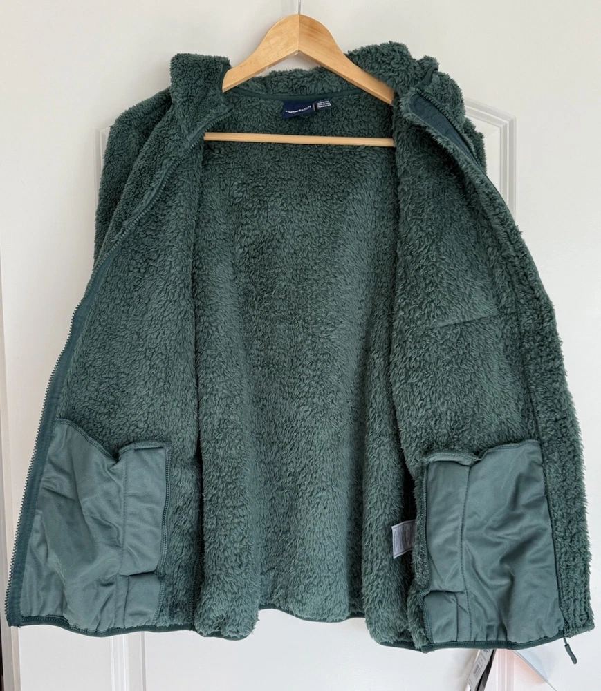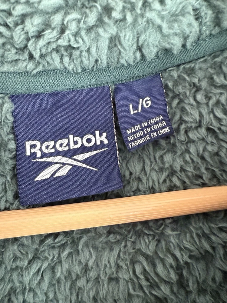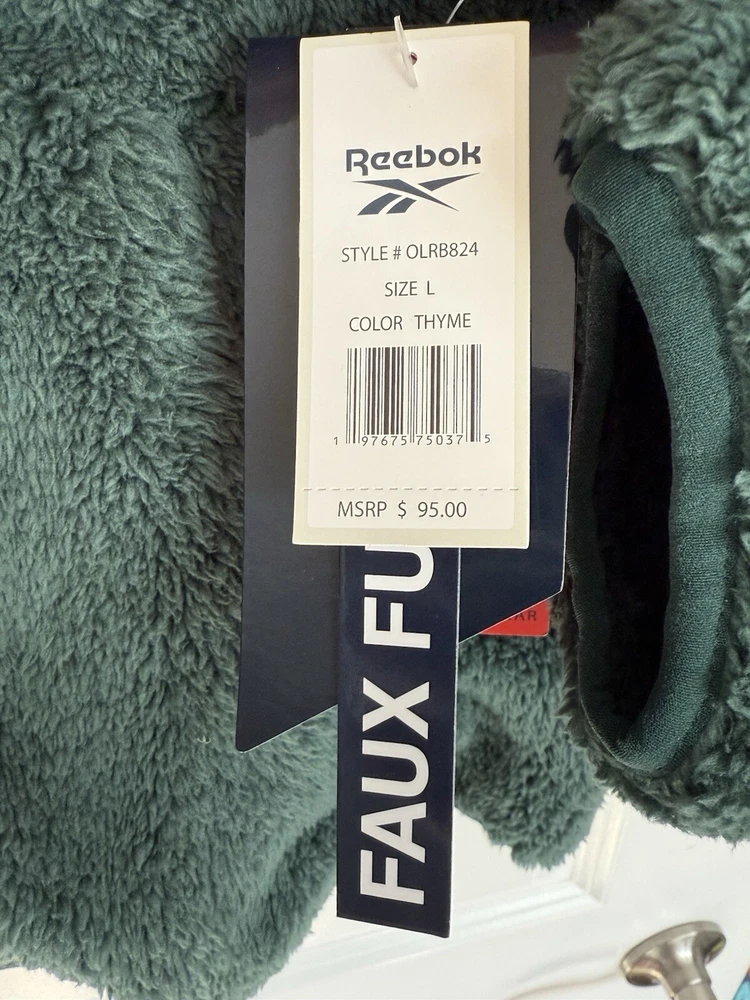 Stay warm and stylish this winter with this NWT Women's Green Reebok Faux Fur Hooded Jacket in size L. The jacket features a cozy faux fur hood, perfect for keeping you warm during cold weather. The outer shell material is made of high-quality faux fur, ensuring a soft and comfortable feel. The jacket comes in a basic style that is perfect for any occasion, with a green color that adds a pop of color to your wardrobe. The features of this jacket include a hooded design and a regular size type, making it perfect for women of all sizes.