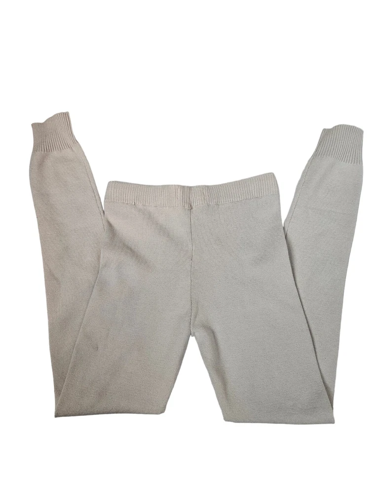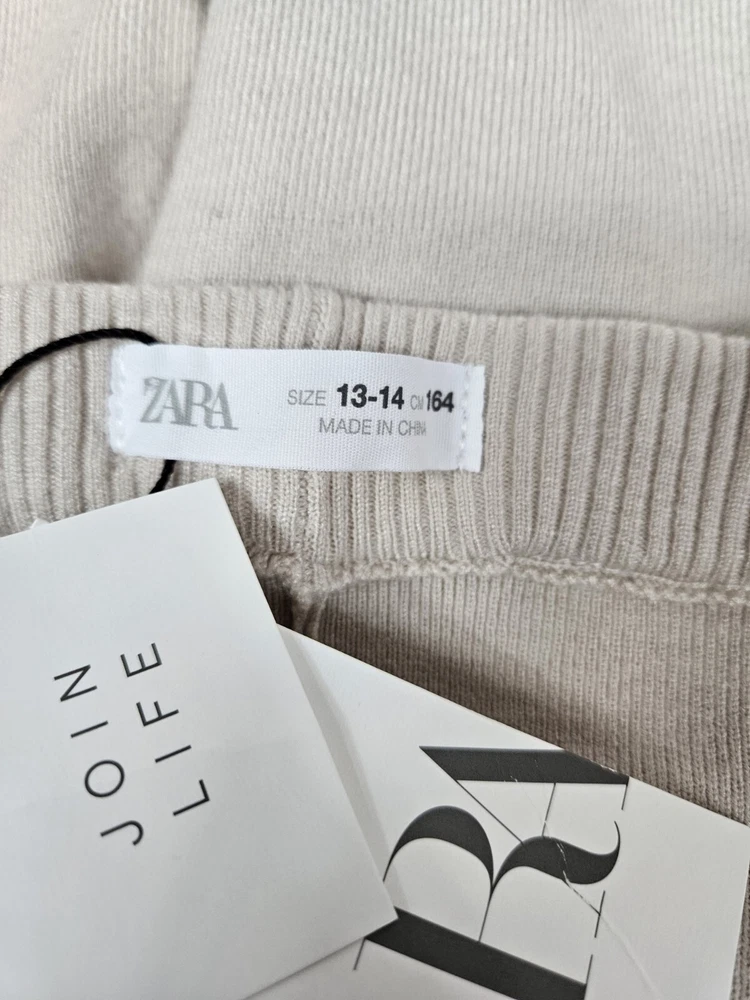 New with tags NWT Zara Taupe Ribbed Knit Leggings Size Large Zara 13/14 Girls. Features neutral taupe ribbed knit leggings, jogger cuffs, faux front tie, ankle length, no pockets, casual preppy style. Measurements laying flat waist 10.75" front rise 7.5" inseam 23.5" Fabric viscose, nylon, polyester This garment is new with tags, no defects