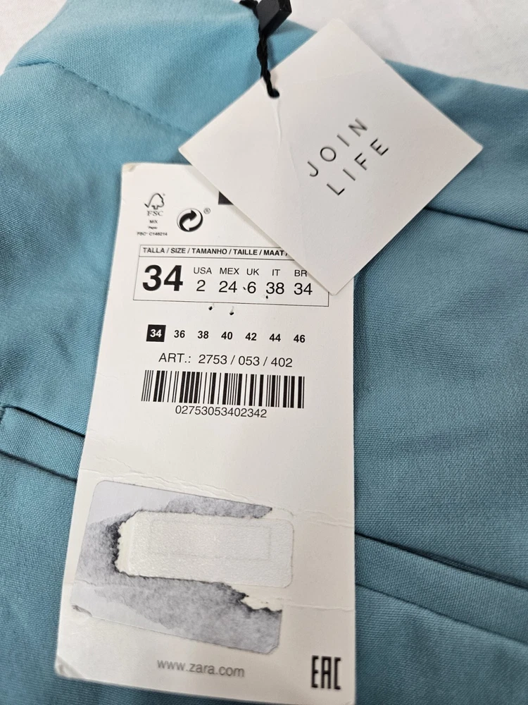 NWT Zara Tiffany Blue Ankle Dress Pants Size 2 Women's L60 New with tags Zara Tiffany Blue Ankle Dress Pants Size 2 Women's. Features beautiful Tiffany blue rayon fabric, ankle pants with side slit, hook loop and zipper closure, 2 slip pockets, 2 back pockets, dress pants. Measurements laying flat waist 12.5" front rise 9.5" inseam 26" hips 17.5" Fabric polyester, viscose, spandex This garment is new with tags, small spot from shipping on right thigh. Should come out when laundered.