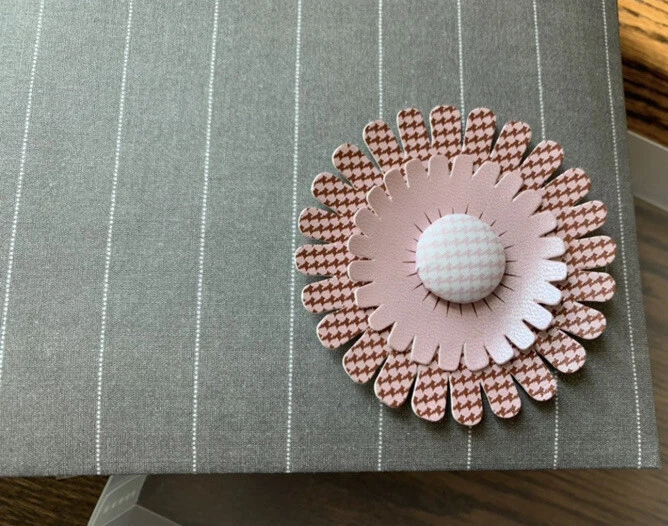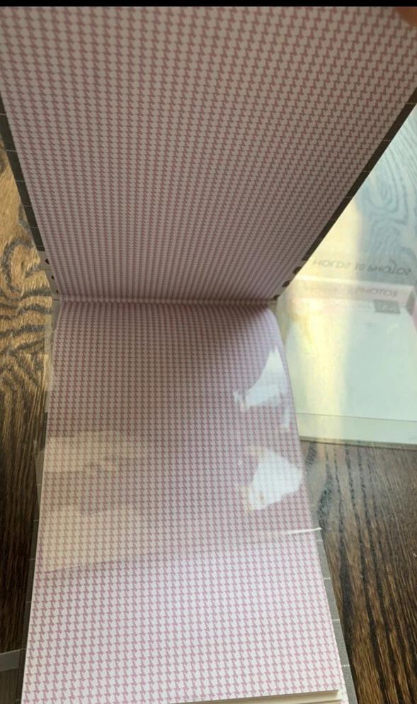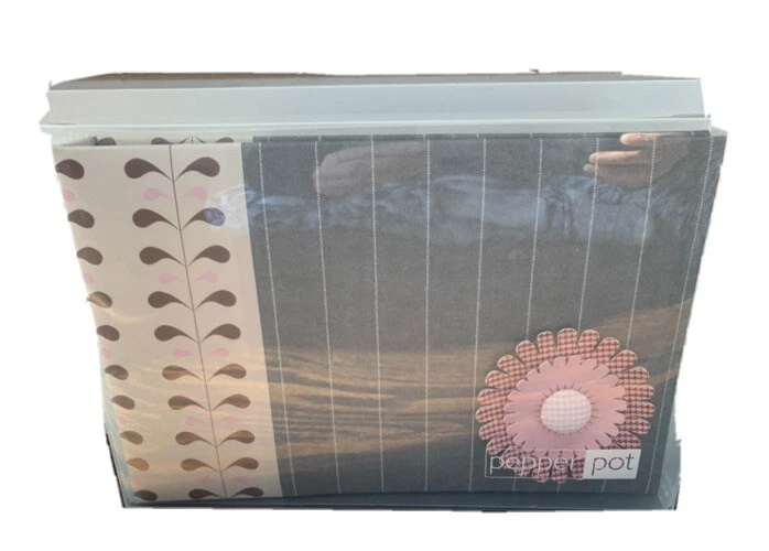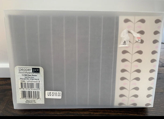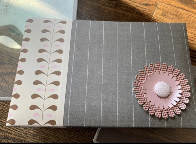 gift card company photo album. New in box and never used! 9”wide by 6” tall Holds 30 photos Acid free paper Pepper pot photo album (division of gift wrap company) Deco flower print Gray stripe cover with pink flower Picture album Modern photo album Photo frame