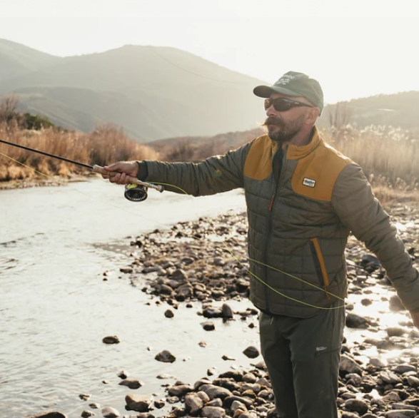 Brand new with tag and original packaging 100% authentic Men's Size XL Color Cappuccino / Camel All sales are final, please make sure it's the right size before ordering Fast shipping via UPS Ground The Merlin Jacket was our first foray into making a puffy jacket way back in 2015. We've made a change here or there but the basic magic of the Merlin has stood the test of time ever since. Filled with thermally efficient Primaloft Gold insulation, the Merlin is the perfect stand alone puffy or enchantingly warm mid-layer under a shell when the mercury really dips. Features ribbed cuffs, heavy-duty shoulder patches, double needle quilted sleeves and a box quilted trunk. 100% polyester rip-stop Midweight with Primaloft Gold insulation Water resistant Heavy-duty cotton-nylon shoulder patches 3'' stand up collar Knitted ribbed cuffs Packs down into built-in pocket stuff sacks Zippered drop in hand warmer pockets Zippered inside chest pocket Regular fit