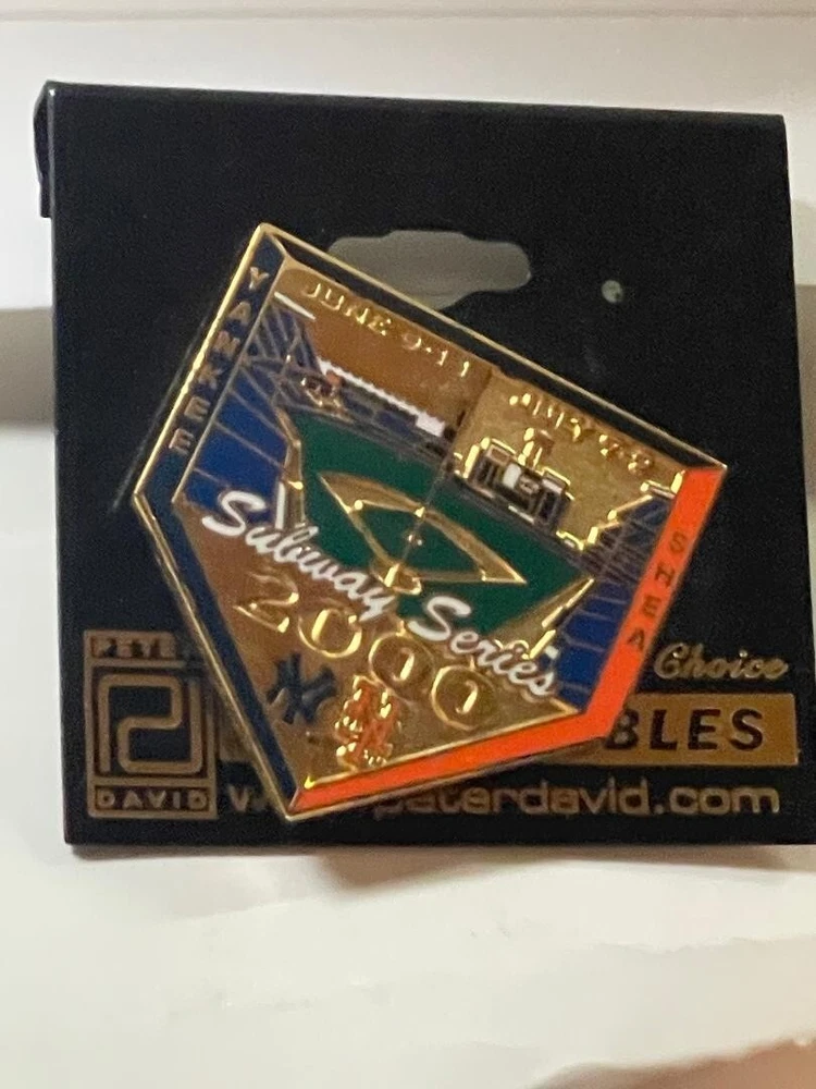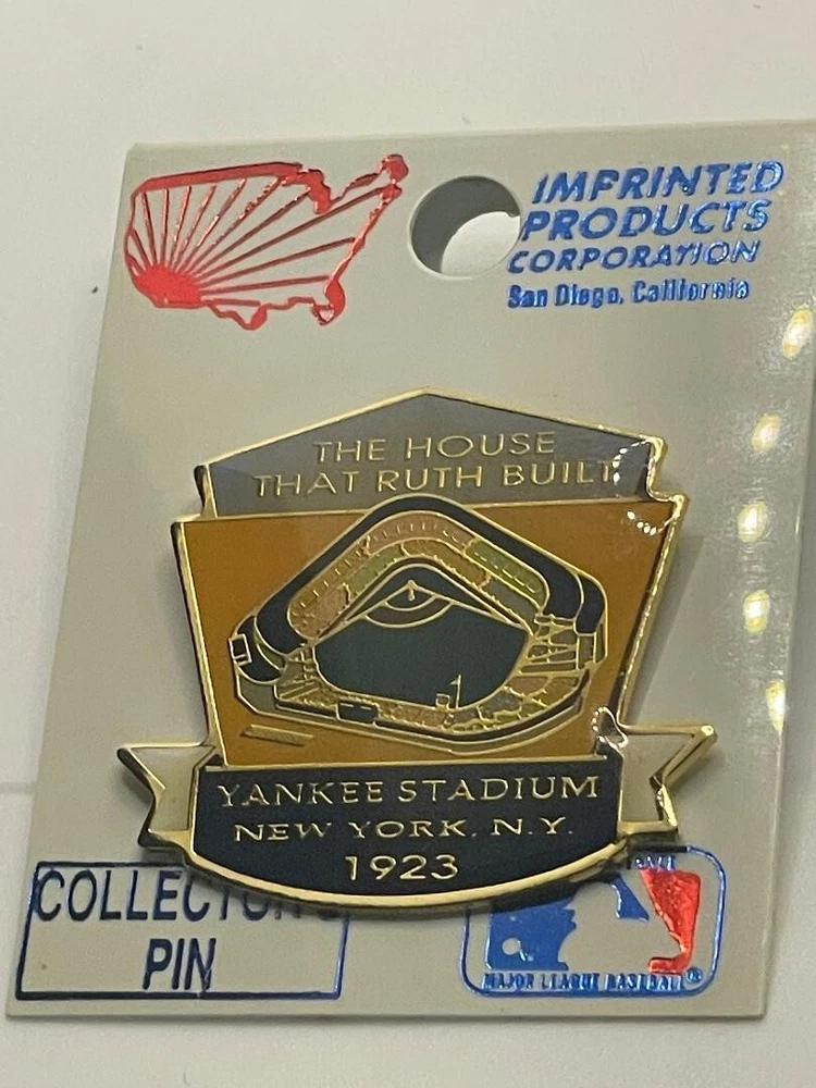 These pins include The Subway Series, Ebbetts field (home of the Brooklyn Dodgers); and Yankee Stadium The House That Ruth Built pin. These pins have never been off the original packageing/card.