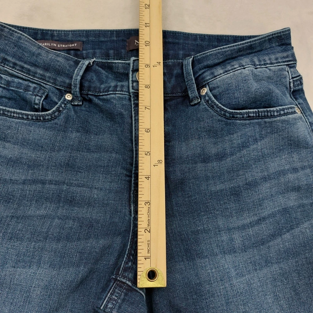 NYDJ JEANS WOMENS MARILYN STRAIGHT LIFT TUCK TECHNOLOGY COOL EMBRACE BLUE DENIM PANTS SIZE 6. COTTON, COOLMAX POLYESTER AND LYCRA BLEND. STRAIGHT LEG. MEASUREMENTS PROVIDED. Items ship from a pet friendly home. *Items ship from a smoke-free home. *Colors may vary due to lighting. *Please read descriptions. Any flaws will be noted and photographed. *I source my inventory from multiple sources. I can not speak on fit for items. I try to provide photos of measurements when possible to assist in fit. *Clothing items are laundered, inspected, and sealed in plastic bags after photos are taken. This ensures you receive the item in the condition it was photographed in. Due to this process, additional details and measurements can not be provided. *Reasonable offers considered. *If you have any questions, please ask. Buyer is responsible for reviewing all photos and descriptions for condition details. Although I do my best to find and disclose any flaws, there may still be flaws present that were missed unintentionally in human error.