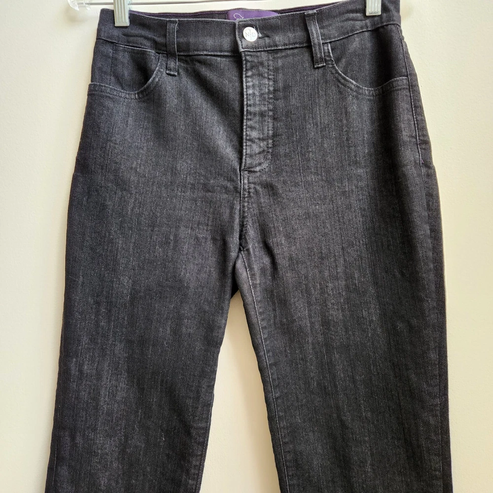 NYDJ Jeans Women's 4 Black Denim Lift Tuck Technology Straight Grunge Goth Retro - Pre-Owned - Has Minor Stretch on Front, See Photo #4. Otherwise in Good Pre-Owned Condition - Measurement – Approximate Waist across front - 13 3/4 in Rise - 10 1/4 in Inseam - 26 1/4 in Out Seam - 36 1/4 in Leg Opening – 6 3/4 in - All Seasons, Night Out, Date Night, Any Occasion, College, School, Everyday, Day Out, Shopping, Party, Stylish, Chic, Trendy, Casual, Modern and Simple - Returns acceptable within 30 days of purchase unworn, in original condition - Check out my E-bay Store. Lots of Choices Available. Reduced shipping for 2 or more items. Let me know before you pay so I can send you an invoice to discount the shipping