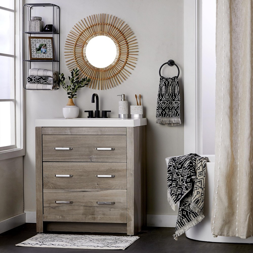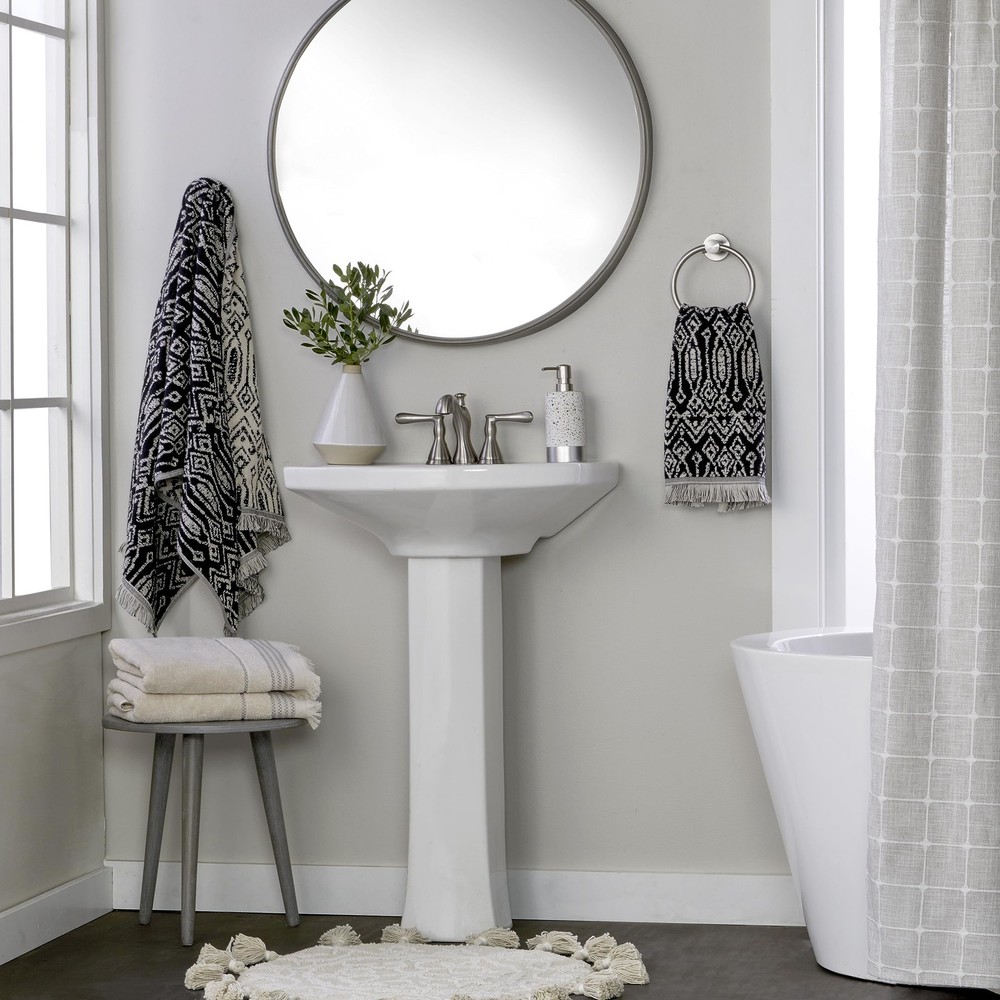Includes 2 hand towels Plush cotton terry with a unique, 2-tone jacquard pattern and fringed hem Colors in pattern are opposite on reverse side Coordinating bath towels sold separately Certified Standard 100 by OEKO-TEX (free from harmful chemicals)