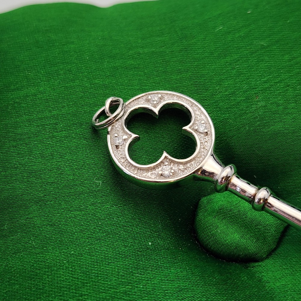 Nadri 925 Sterling Silver Clover Key Pendant with CZ Stones