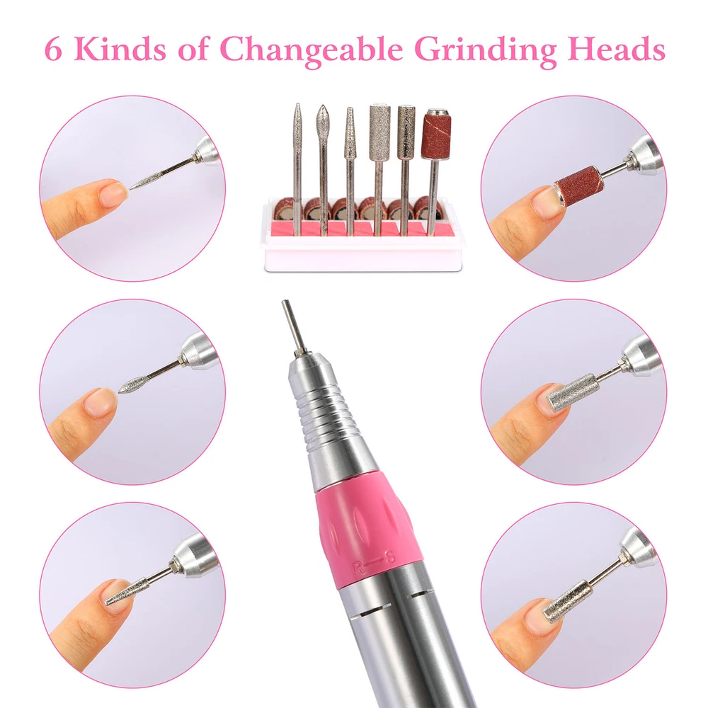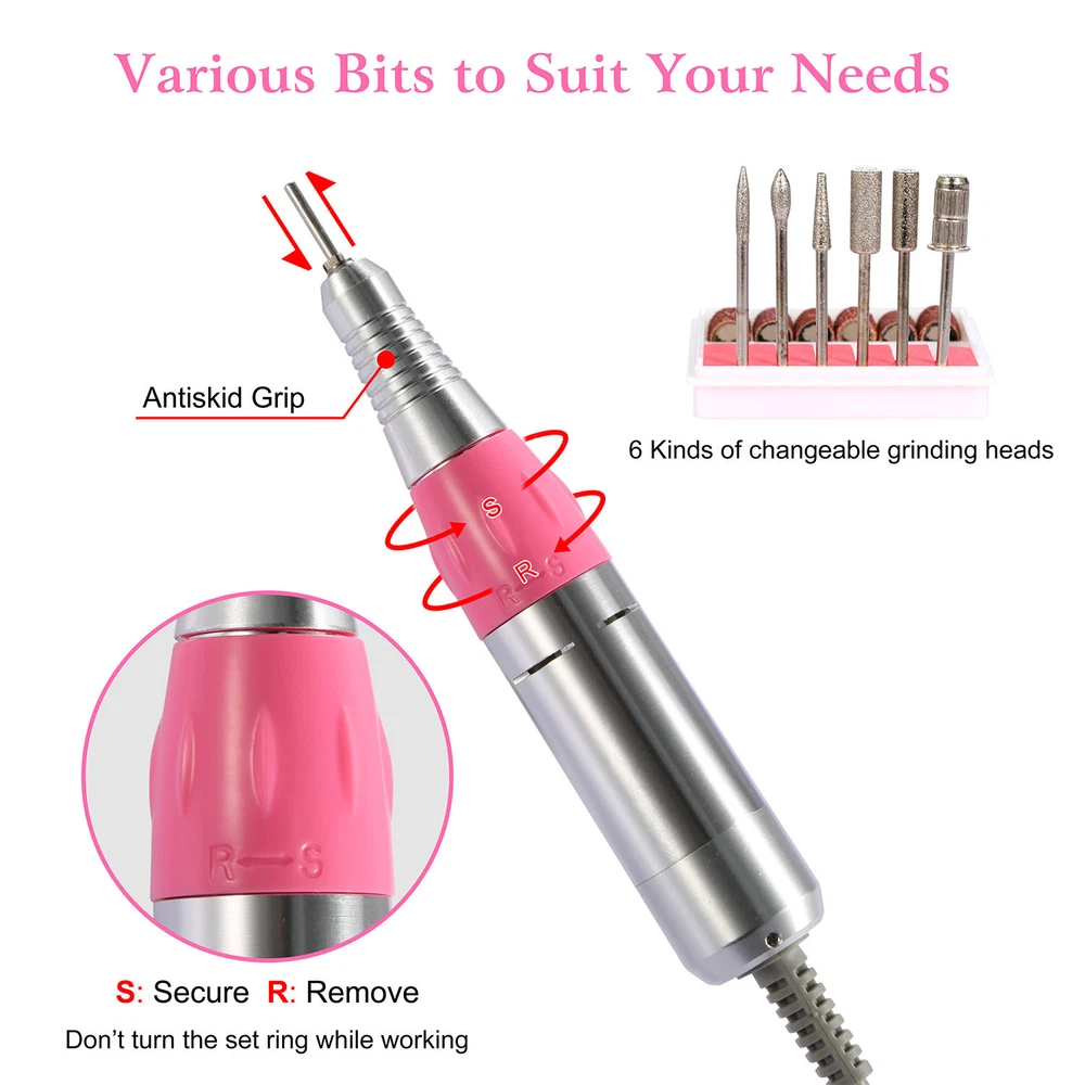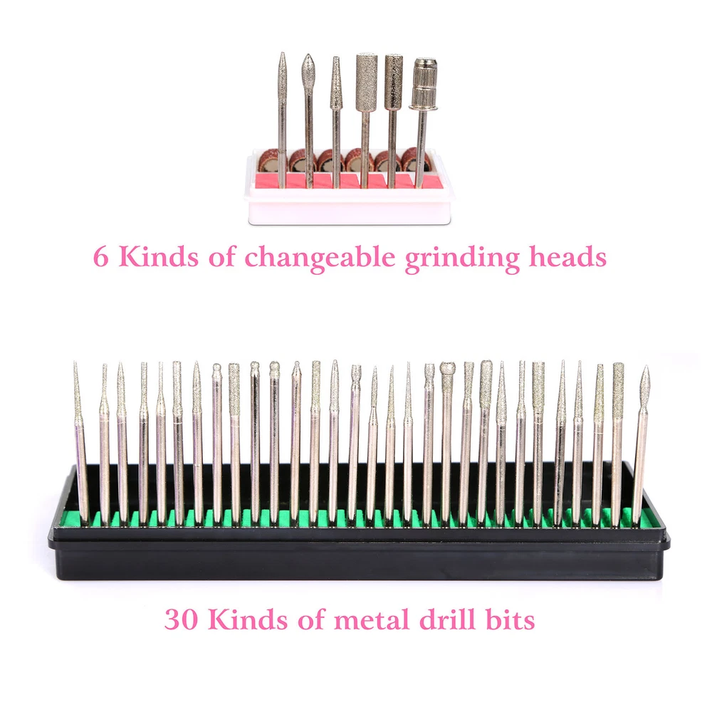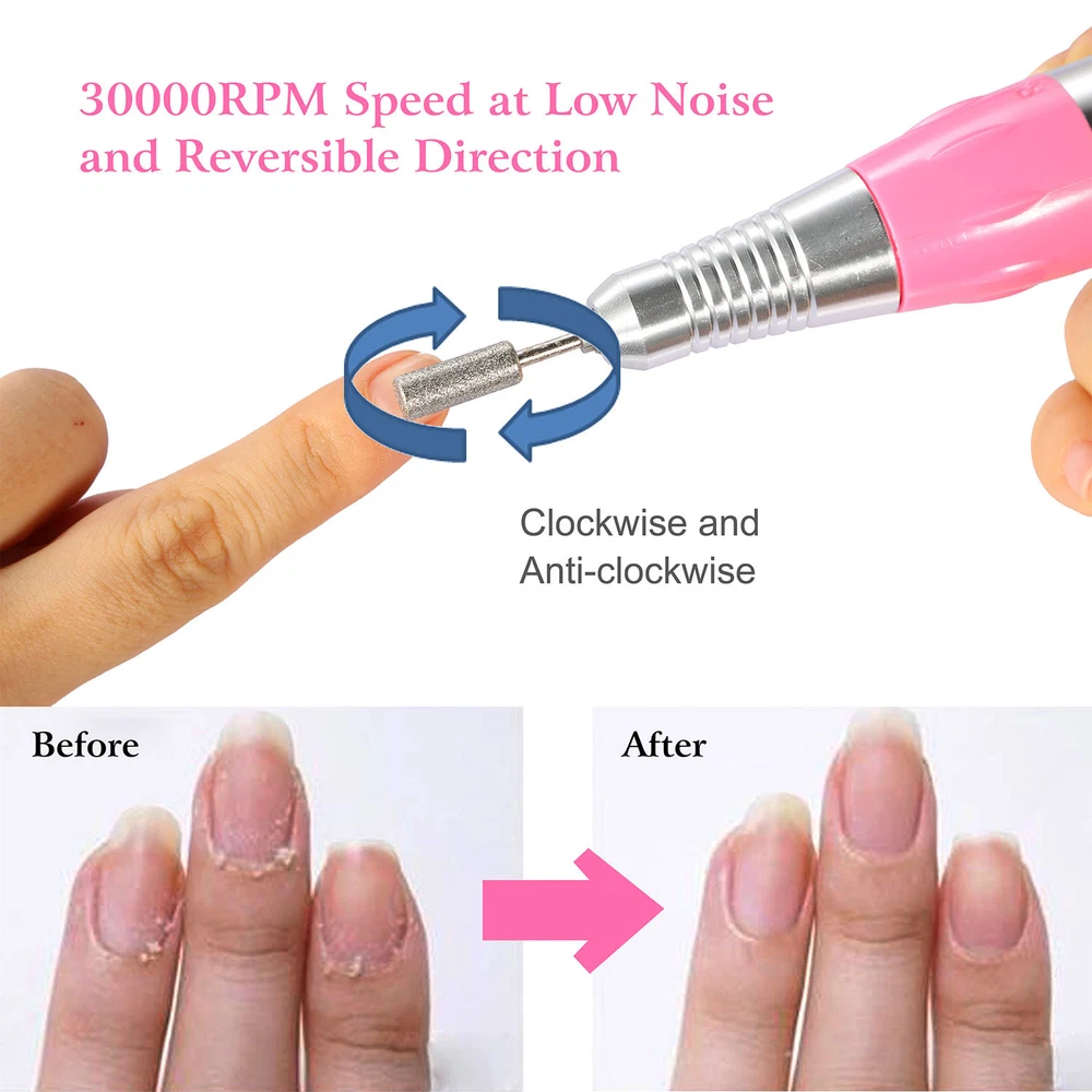 eBay GOOD QUALITY & FAST SHIPPING Product Detail Image Gallery Product Description Overview: Our electric nail drill kit features with 6 speed indicator lights and a speed control slide switch (Adjust from Min to Max speed when in use) , its inbuilt strong motor offers up to 30000RPM controllable speed to satisfy your needs at low noise and smooth working. Equipped with a FWD (Forward) and REV (Reverse) switch to change direction, optimal for left-handed use. Comes with 36 drill bits and 300 pcs sanding bands, an optimal acrylic nail care kit for exfoliating, grinding, polishing, carving, engraving, routing, sharpening and sanding, widely used in nail salon, beauty parlor, spa or nail DIY at home. An optimal gift for your girlfriends, friends or nail technicians. Features: Adjustable Speed and Direction: Featured with 6 speed indicator lights and a speed control slide switch(Adjust from Min to Max Speed when in use),inbuilt with a strong motor,it offers you up to 30000RPM controllable speed to satisfy your needs at low noise and smooth working. Equipped with a FWD(Forward) and REV(Reverse) switch to change direction,perfect for left-handed use. Professional Acrylic Nail Kit and Multi-purposes: Comes with 30 metal grinding drill bits,6 professional filing heads,300 pcs sanding bands,convenient for replacement according to your nail shapes,it can not only file,buff,but also smooth corns,calluses and remove excess cuticles. An optimal acrylic nail care kit for exfoliating,grinding,polishing,carving,engraving,routing,sharpening,sanding,etc. Finger Nail and Foot Working Modes: Equipped with a HAND and FOOT switch,makes it a humanized design that you can used both for nail finger and foot. Note:When you switch to FOOT mode(optional),you need to press the pedal to start the motor and make it work for you. 100-120V Input Voltage and Durable: Please make sure that your input voltage is 100V-120V,or a power adapter(Not included) is needed. Fast heat dissipation and low energy consumption,safe for you to use. Adopts ABS and metal materials,abrasion-resistant and durable. Widely Used: Widely used in nail salon,beauty parlor,spa or nail DIY at home. An optimal gift for your girlfriends,friends or nail technicians. Specifications: Brand: iMounTEK Product Type: Electric Nail Drill Machine Input Voltage: 100-120V, 60 Hz Output Voltage: 0-13V DC Output Current: 1.5A Rated Speed: 0-30000 RPM Color: Pink Power Supply Cable Length: 121cm/47.64inch Foot Pedal Cable Length: 137cm/53.94inch Handpiece Cable Length: 58cm/ 22.84inch Handpiece Size: 15×2×2cm/5.91×0.79inch Handpiece Weight: 182g/ 0.40lbs Nail Drill Machine Size: 13×15×8cm/5.12×5.90×3.15inch (L×W×H) Nail Drill Machine Weight: 657g/1.45lbs Foot Pedal Size: 10× 6×4cm/ 3.94×2.36×1.58inch (L×W×H) Foot Pedal Weight: 92g/0.21lbs Package Size: 26x26x15cm/10.24x10.24x5.9in Package Weight: 1633g/3.6lbs Package Contents: 1 × Table Stand for Handpiece 1 × Foot Pedal Power Control 30 × Metal Grinding Drill Bits 6 × Metal Optional Bits/Filing Heads 3 × 100 Pcs of Sanding Bands 1 × User Manual Terms & Conditions Thank you for your business ! On Sep 11, 2024 at 10:18:16 PDT, seller added the following information: