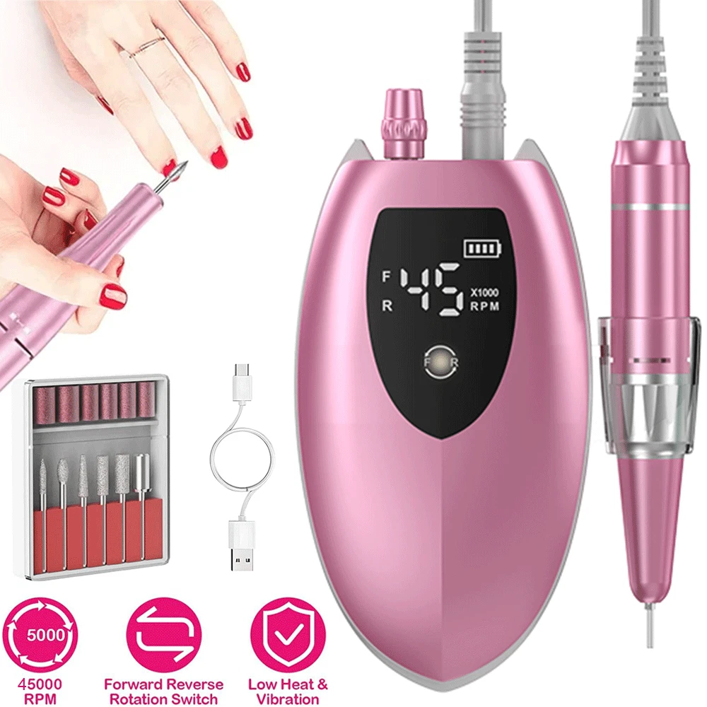 Nail Drill Machine, Electric Nail File 45000RPM Portable Acrylic Nail Drill Set