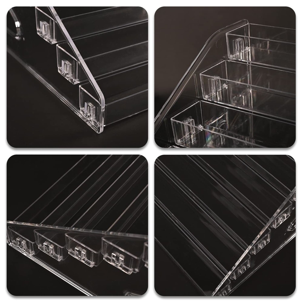The Sunglasses Organizer made of high quality and durable acrylic with transparent appearance, high transparency. Fashion and modern, corner polishing prevent scratch. Provide maximum visibility for your Sunglasses . The Sunglasses Organizer made of high quality and durable acrylic with transparent appearance, high transparency. Fashion and modern, corner polishing prevent scratch. Provide maximum visibility for your Sunglasses . 6-Layer Acrylic Sunglasses Holder, Can hold up to 12 pairs of sunglasses. Each layer is 11.8 inches long and 1.44 inches wide, a total of 6 layers. Not just for Sunglasses holder, also perfect for nail polish, essential oil display, placing cotton balls, lip gloss, lipstick, nail tools, etc. Easy to install and use. It uses a snap design and does not require any screws. When you get it, you need a simple installation. 100% - If you have any problems, please feel free to . we will deal with it within 24 hours. 100% satisfaction and friendly .