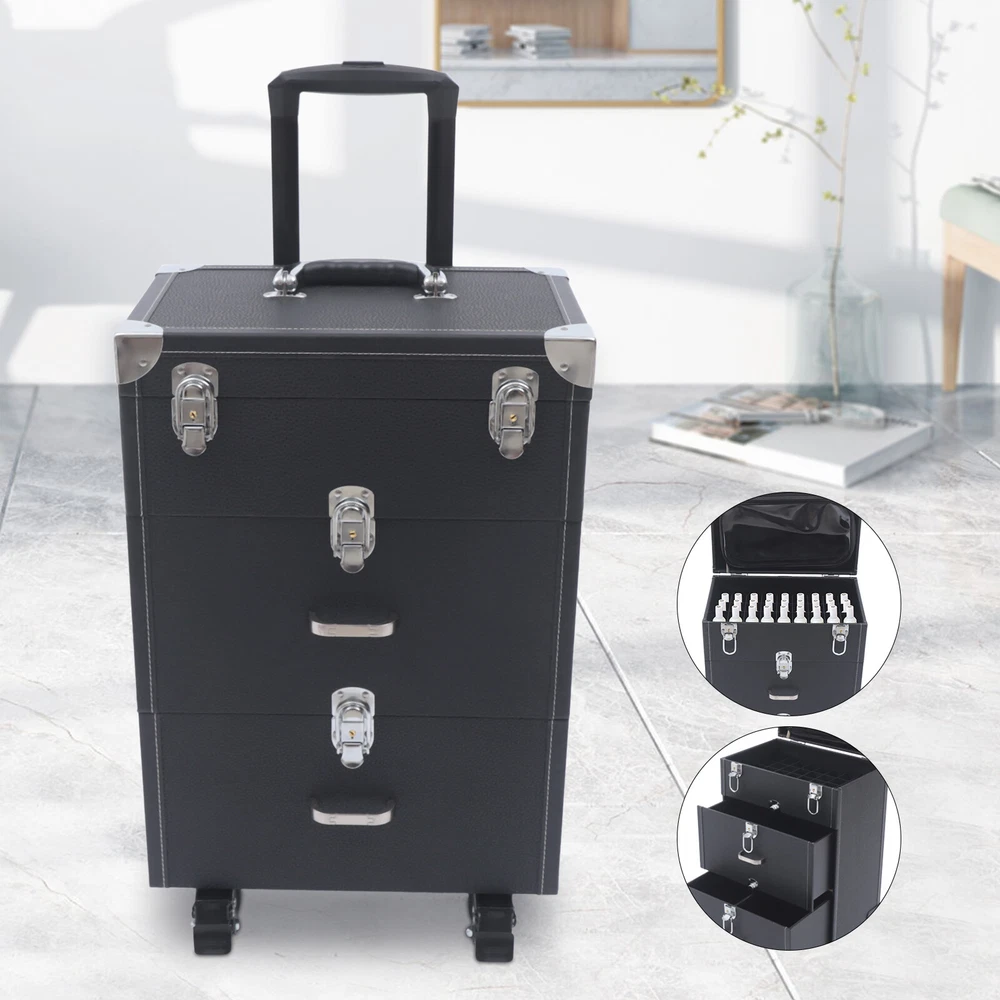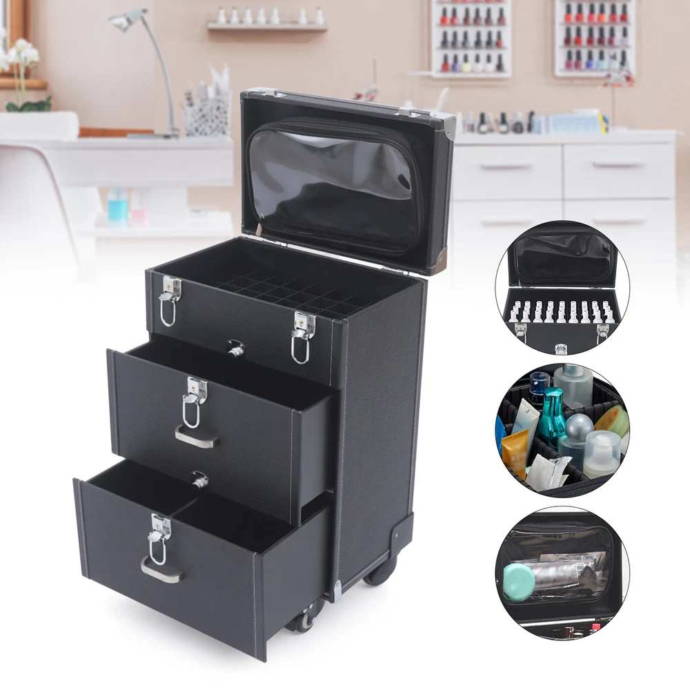 Specification Color: Black Body Material: PU Latch Material: Zinc Alloy Wrapped Corners Material: Zinc Alloy Number of Layers: 3 Shape: Rectangular Telescopic Rod Length (Max.): 45cm/17.8inch Case Size: 36 * 23 * 49cm/14.2*9*19.3inch Wheel Height: 7cm/2.8inch Lid Height: 5cm/2inch Upper Layer Size: 36*23*9cm/14.2*9*3.5inch Middle Layer Size: 36*23*17cm/14.2*9*6.7inch Bottom Layer Size: 36*23*17cm/14.2*9*6.7inch Upper Layer Inside Size: 33.5*22*8cm/13.2*8.7*3inch Each Upper Compartment Size: 3.5*3.5*4.5cm/1.4*1.4*1.8inch Diagonal Length of Upper Layer: 40cm/15.7inch Middle Layer Inside Size: 30*19.5*13.5cm/11.8*7.7*5.3inch Diagonal Length of Middle Layer: 38cm/15inch Each Bottom Layer Compartment Size: 14.5*19*13.5cm/5.7*7.5*5.3inch Nail Polish Storage Box Cosmetics Rolling Cases Travel Makeup Rolling Organizer Description This is a cosmetics rolling organizer with a large capacity. You can use it to store all your cosmetics. This organizer is made of high-quality PU material. It is very durable. Besides, it has a delicate and beautiful appearance. Furthermore, the wheel design makes it very easy to carry and transport. It is a good choice. Specification Color: Black Body Material: PU Latch Material: Zinc Alloy Wrapped Corners Material: Zinc Alloy Number of Layers: 3 Shape: Rectangular Telescopic Rod Length (Max.): 45cm/17.8inch Case Size: 36 * 23 * 49cm/14.2*9*19.3inch Wheel Height: 7cm/2.8inch Lid Height: 5cm/2inch Upper Layer Size: 36*23*9cm/14.2*9*3.5inch Middle Layer Size: 36*23*17cm/14.2*9*6.7inch Bottom Layer Size: 36*23*17cm/14.2*9*6.7inch Upper Layer Inside Size: 33.5*22*8cm/13.2*8.7*3inch Each Upper Compartment Size: 3.5*3.5*4.5cm/1.4*1.4*1.8inch Diagonal Length of Upper Layer: 40cm/15.7inch Middle Layer Inside Size: 30*19.5*13.5cm/11.8*7.7*5.3inch Diagonal Length of Middle Layer: 38cm/15inch Each Bottom Layer Compartment Size: 14.5*19*13.5cm/5.7*7.5*5.3inch Diagonal Length of Each Bottom Compartment: 22cm/8.7inch Gross Weight: 10kg/22lbs Package Size: 63*32*41cm/24.8*12.6*16.1inch Package Included 1* Cosmetics Rolling Organizer 2* Keys Payment Delivery details Terms of sales About us Contact us Payment We accept ebay payment 。 Fees such as import duties, taxes are not included in the item price or shipping costs. These charges are the buyer's responsibility. Delivery details Shipping: 2-9 working days to: USA Terms of sales We maintain high standards of excellence and strive for hundred percent customer satisfaction. Feedback is very important to us. We hope that you contact us immediately before you give neutral or negative feedback, so that we can address your concerns. It is impossible to address issues if we do not know about them! About us Your satis faction is our ultimate goal. We work hard to earn your trust and future business. Our certified technicians have tested each item before shipping. The unit comes with 1 year limited warranty on all manufacturing defects. a) If you receive a defective item, you may return it or ask for a discount. Please contact us within 14 days after you receive the package. b) What you returned must be intact and in its original packaging as re? u. Customer is responsible for shipping costs of the returned item. c) We will cover the cost of shipping back t with the shipping rate indicated in the registration page. We will send you a new unit or refund the full payment you paid. Thank you. Contact us Business Hour Business Hour: Monday To Friday: 8:30 AM to 5:00 PM (Beijing China time) Due to time zones, our reply to your questions may not be immediately. But within above working time, we will reply your email within 24 hours. If it's non-workdays, please kindly be patient and wait till Monday. Please contact us with ebay message. Please feel free to contact us if you have any questions. Monday To Friday: 8:30 AM to 5:00 PM (Beijing China time) Due to time zones, our reply to your questions may not be immediately. But within above working time, we will reply your email within 24 hours. If it's non-workdays, please kindly be patient and wait till Monday. Please contact us with ebay message. Please feel free to contact us if you have any questions. Brand Unbranded Highlights Compact Design,Unique Appearance,high reliability Color Black Material PU ISBN Does not apply Features Rolling Type Case MPN Does not apply Manufacturer Warranty 1 Year Maximum Length of Telescopic Rod 45cm/17.8'' Number of Layers 3 Shape Cuboid Wheel Height 7cm/2.8'' Lid Height 5cm/2inch Gross Weight 10kg/22lbs