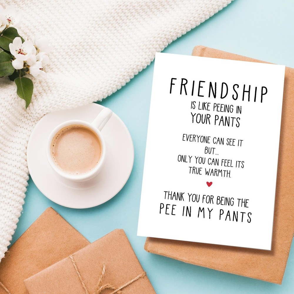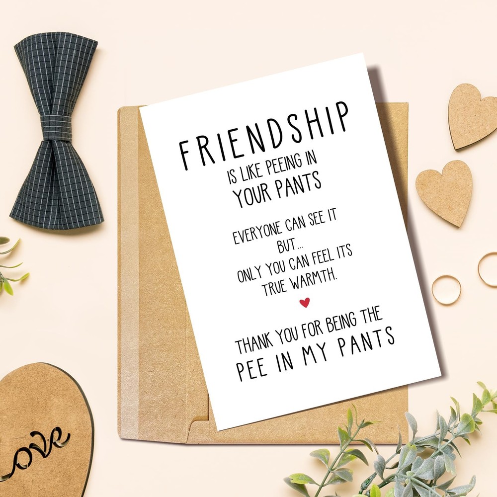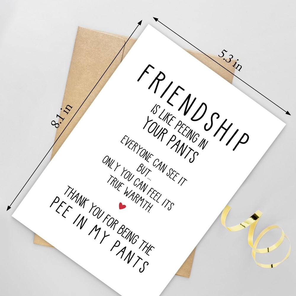 Naixiwen Best Friend Birthday Card for Women Men, Funny 153 Product Features Hilarious Design: This funny birthday card features a witty and playful message: "Friendship is like peeing in your pants. Everyone can see it, but only you can feel the warmth." A great combination of humor and heart to celebrate your bond with your bestie! Well Suited for Close Friends: Whether it's for your BFF, mate, or close partner, this best friend birthday card makes a fun and memorable birthday gift for your best friend, bro, ladybro, or childhood chum. Show them you appreciate the warmth of your friendship with a laugh. Humorous & Sarcastic Tone: A humorous and slightly inappropriate twist on the typical birthday greeting. The sarcastic banter and witty humor make it an ideal choice for those who love funny, naughty, and light-hearted birthday wishes. Quality Material: Printed on durable 300gsm cardstock, measures 8.1 * 5.3 inches, this birthday card for friend is designed to last. Its vibrant colors and sharp text will ensure your humorous message is delivered in style. Versatile Gift for Any Good Friend: Great for both men and women, whether it's for a bro, buddy, crony, or pal. Whether you share a long-standing friendship or a hilarious bond, this funny friendship card will make your bestie laugh out loud on their special day. Shipping: Shipping is complimentary within the lower 48 US States. We Do Not Ship to PO/APO Boxes, HI or Alaska We Do Not Ship Outside of the Continental US All items ship within 24-72 hours of Payment For large items that require Freight shipping a valid phone number is required to call and schedule your delivery Terms of Sale and Feedback: Feedback is extremely important to us and eBay If you are satisfied with our transaction, please take a moment to leave Positive Feedback. YOUR Satisfaction is our #1 Priority! If there are any issues, PLEASE contact us BEFORE leaving a neutral or negative rating so that we may resolve any concerns. We PROMISE we can make you happy if you give us a fair chance. Returns / Concerns: All items qualify for returns within 14 - 30 days of receipt. Buyer is responsible for return shipping on any item that is not damaged Please be sure this is an item you want before making your purchase. Customer Satisfaction is our TOP priority! All items are IN STOCK at time of listing. Inventory on eBay changes constantly and it is impossible to maintain a perfectly accurate count of all items. Please do not penalize us if we have to issue you a refund! Thank You For Your Business!
