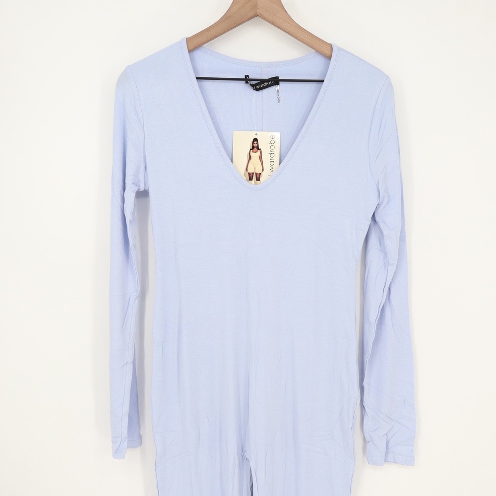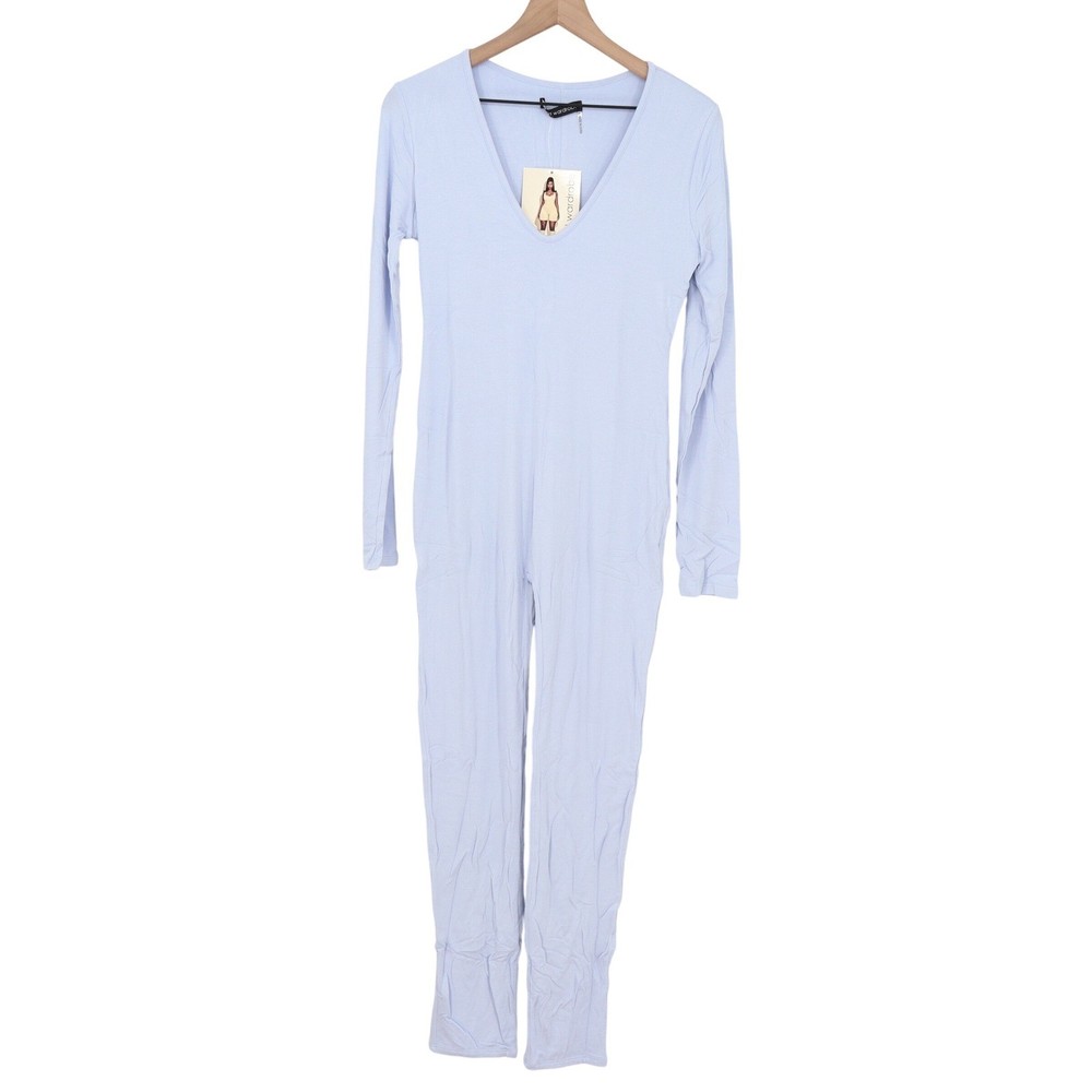 Naked Wardrobe long sleeve jumpsuit in a light blue shade offers a sleek, body-hugging silhouette. Crafted from a soft and stretchy viscose blend, this one-piece features a deep V-neckline and full-length legs, making it a versatile choice for lounging or as a base layer for a chic streetwear ensemble. The minimalist design is accented by a clean finish and a comfortable, breathable feel. Measurements: • Chest: 18" (36" doubled) • Length: 55" • Inseam: 30" Brand: Naked Wardrobe Style Number: nw-j0347 Material: 95% Viscose, 5% Spandex Color: Light Blue Neckline: V-Neck Sleeve Length: Long Sleeve Leg Style: Skinny/Tapered Closure: Pull-on Stretch: Yes Season: All Season Origin: Made in China Keywords: Bodycon, Catsuit, Loungewear, Athleisure, Minimalist, Pastel, Streetwear, Layering, Basic, Form Fitting, Soft, Blue Jumpsuit, One Piece All orders are shipped the same business day or the next business day. Thank you for supporting my small business.
