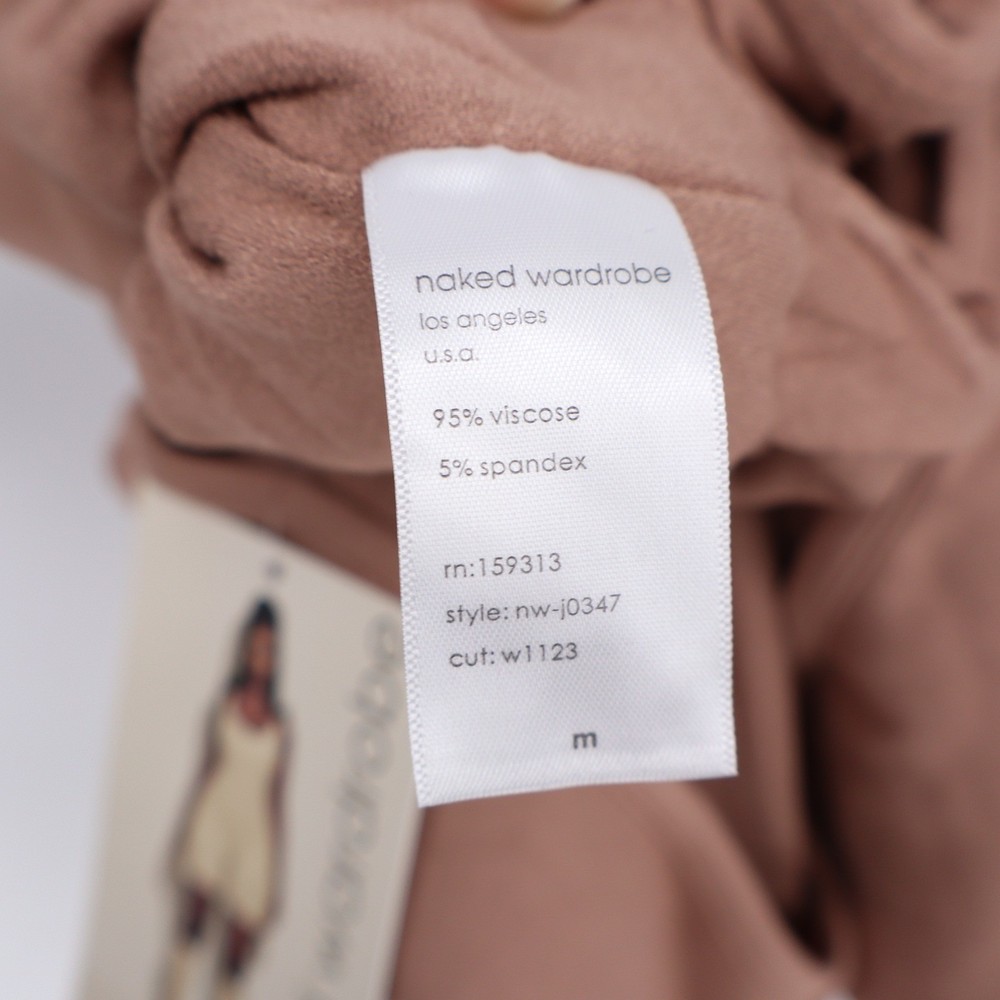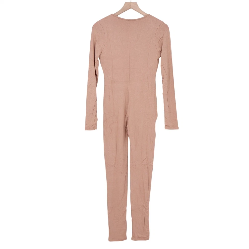 Naked Wardrobe Long Sleeve V-Neck Jumpsuit Tan Mauve Size M
