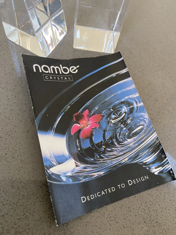 Nambe Contemporary MCM Crystal Candlesticks Abstract Modern Kissing 7”
