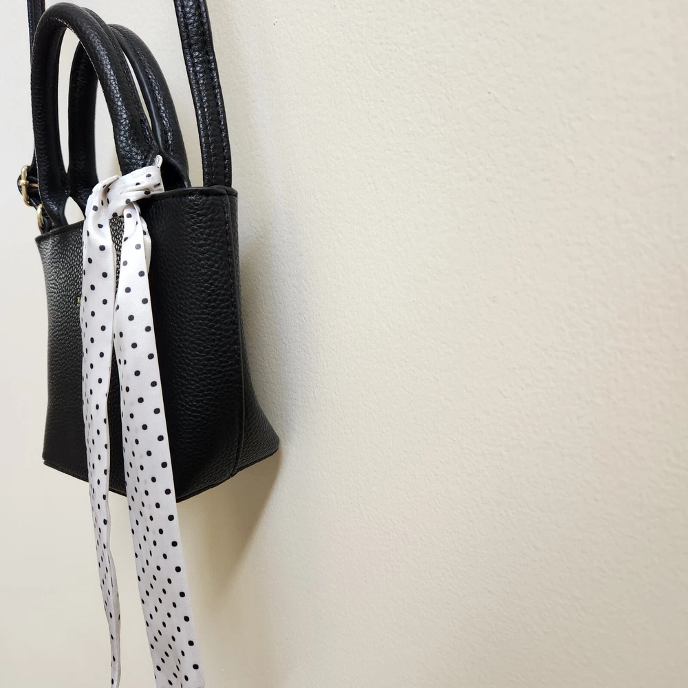 Nanette Lepore Black Vegan Leather Adjustable Crossbody Bag Mini Tote Scarf - Pre-Owned in Very Good Condition - Measurements in Photos - Returns acceptable within 30 days of purchase unworn, in original condition - Check out my E-bay Store. Lots of Choices Available. Reduced shipping for 2 or more items. Let me know before you pay so I can send you an invoice to discount the shipping