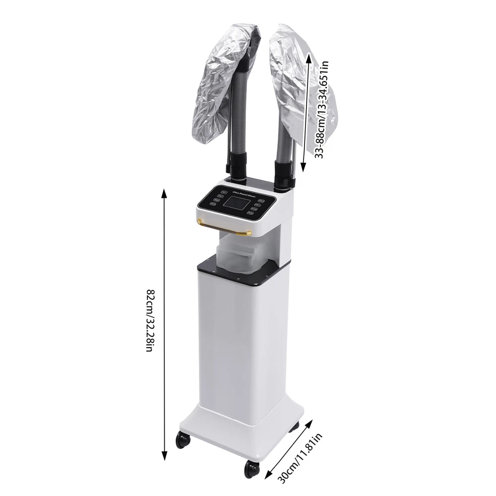 Nano Hair Steamer Anion Hair Color Processor Machine w/ Double Hair Steamer Arm ❤Welcome❤ Multifunctional Hair Dyeing Machine, Nano Hair Steamer, Hair Oil Machine Description In this fast-paced era, give your hair a deep pampering journey like never before! It's not just a product, it's a magic wand to add to your daily care rituals and give your hair a natural shine. This innovative Nano hair steamer offers a rejuvenating encounter, infusing your locks with revitalizing hydration, not merely restoring but elevating their vitality. Take action now so that beauty is no longer a dream, but a reality within your reach. Your hair deserves this exclusive pampering! Key Features Durable and Sturdy: The product is mainly made of high-quality aluminum alloy with a painting process, which is anti-tarnish, wear-resistant, corrosion-resistant, and can ensure an extended service life. Care for Your Hair: It has a powerful power of 650W and uses Nano technology to utilize nano water molecules to penetrate the hair, fully replenish and moisturize the hair, promote penetration and repair your damaged hair. Multi-functional Use: It has oil baking/hair coloring/conditioning/shirt/styling/cold mist/ozone multiple functions, free fog control, timing function(0-30min), the spray can be between 104-158°F (cold mist can shrink the pores, hot mist can open the pores), so you can enjoy the ultimate in hair care! Ozone Properties: The ozone treatment is a scalp and hair care program that converts oxygen into ozone and diffuses it into the hair shaft to strengthen the hair follicles. This hair treatment addresses common hair problems including hair loss, hair breakage, dandruff and premature graying of the hair while also increasing hair volume. Thoughtful Design: Its 2 tubes can be retracted within 13-34.65 inches at will into and out for your convenience, while the four tangle-proof hair universal wheels at the bottom are trapezoidal in design, which is stable and safe, allowing you to move around at will. Safety First: It has an automatic shut-off function without water and an anti-dry burn function. In addition, high-quality power switch and fuse holder can prevent power leakage, and the power failure protection fuse ensures your safety when using it. Easy Operation: The smart operating panel features clear instructions, sensitive control buttons, and LCD display, so you can get started quickly and save time. Ideal Gift: With its practicality and powerful functions, you can give it to your friends and family as a Christmas or Thanksgiving gift! Customer Service: We aim to provide quality products and services. If you have problems, please feel free to contact us. We will reply and solve the problem for you as soon as possible. Details Drainage Outlet: The good quality drainage outlet can facilitate you to drain the waste water, which in turn protects the service life of the product. External Water Reservoir: The removable, 28.15oz water reservoir eliminates the need for frequent refilling and allows for easy cleaning, while the semi-clear design allows you to keep an eye on the water level at all times. Steam Caps: Two waterproof steam caps are available for your convenience without the need to purchase additional ones! Durable Handle: It is very comfortable to use and easy to push. Application It can be used at home, barber stores, beauty salons, etc. It is used for preventing dandruff, itchy scalp, hair loss, over secretion of oil, quickly repairing damaged hair cells, nourishing hair, improve the quality of hair problems such as dryness, dull yellow color, hair-splitting, brittle and roughness. It is suitable for low-temperature perm, hair dyeing with steam, and hair care with steam. Specification Color: Gold/White Material: Aluminum Alloy Process: Painting Assembly Required: Yes Style: Modern Shape: Rectangle Mount Type: Freestanding Screen Type: LCD Plug Type: US Standard Power Source: Corded Electric Voltage: 110V, 50Hz Power: 650W Time Setting: 0-30min Temperature Range: 40-70°C/104-158°F Water Reservoir Capacity: 800ml/28.15oz Power Cord Length: 1.8m/5.91ft Each Tube Telescopic Length: 33-88cm/13-34.65in Gross Weight: 12kg/26.46lbs Net Weight: 11kg/24.25lbs Package Size: 83*34*35cm/32.68*13.39*13.78in Main Machine Size: 30*30*82cm/11.81*11.81*32.28in Package Included 1* Nano Hair Steamer 2* Steam Caps 4* Universal Wheels 1* Power Line 1* English Instruction Notes Pay attention to your hands and feet away from the drain to prevent burns. Please add purified water before starting the machine. Otherwise the water dirt will block the instrument inlet. Before leaving the factory, the machine needs to be filled with water to test the fogging condition of the machine, so maybe some water remains inside the bottle. Please read the English instructions carefully before use and pay particular attention to the safety tips contained therein. Please allow the slight color difference caused by the shooting light and 1-3cm error due to manual measurement, and make sure you do not mind before ordering. *Description* Welcome to Autocomponents999 Thank you for your support! If you have any questions,please feel free to contact us!!! ↓↓↓↓ HAVE A NICE DAY ! Payment Delivery details Terms of sales About us Contact us Payment We accept ebay payment 。 Fees such as import duties, taxes are not included in the item price or shipping costs. These charges are the buyer's responsibility. Delivery details Shipping: 2-9 working days to: USA Terms of sales We maintain high standards of excellence and strive for hundred percent customer satisfaction. Feedback is very important to us. We hope that you contact us immediately before you give neutral or negative feedback, so that we can address your concerns. It is impossible to address issues if we do not know about them! About us Your satis faction is our ultimate goal. We work hard to earn your trust and future business. Our certified technicians have tested each ite