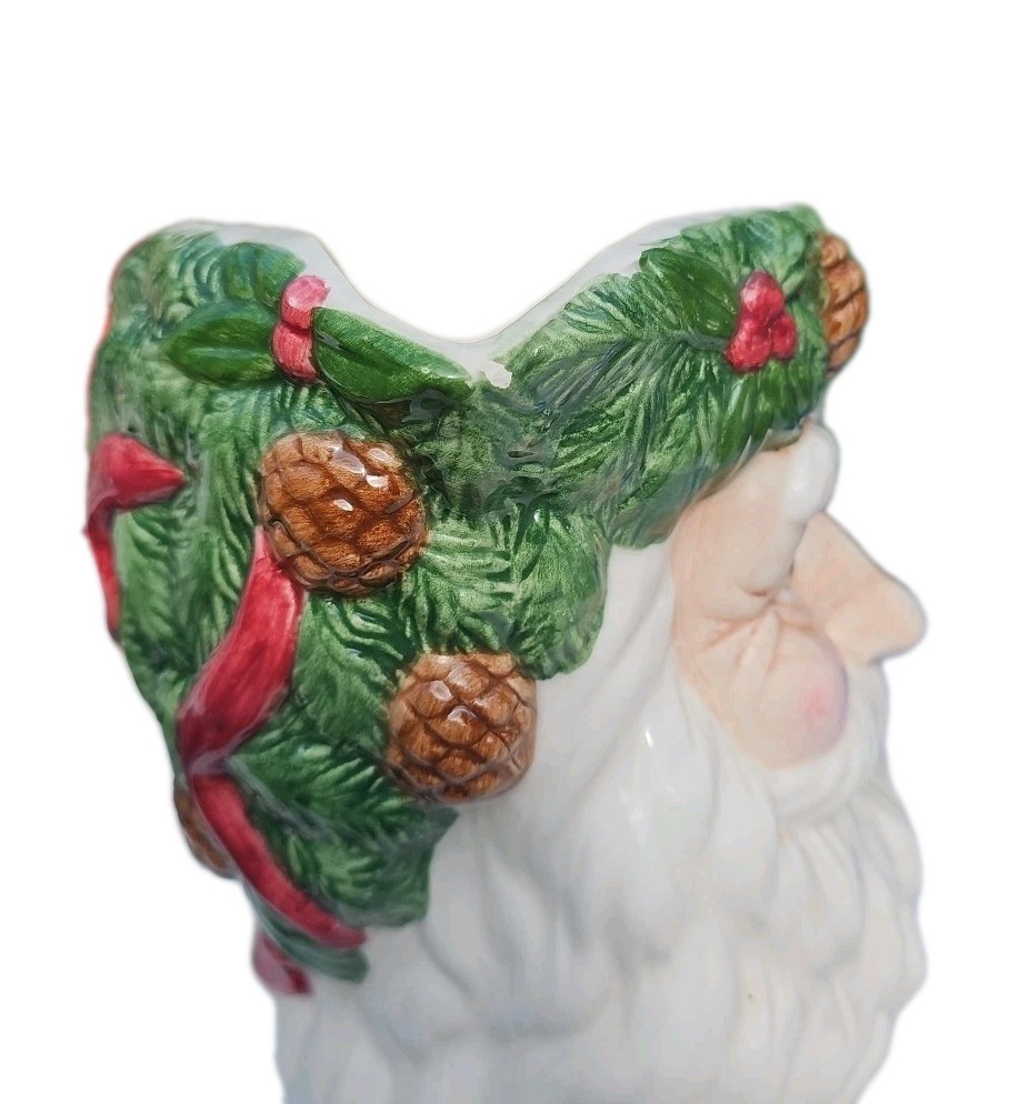 The Nantucket Vintage Ceramic 8" Pitcher Santa Father Christmas Large is a collectible holiday piece perfect for Christmas enthusiasts. Made of ceramic in a multicolor design, this pitcher showcases the iconic image of Santa Claus, adding a touch of nostalgia to any holiday decor. Manufactured in the 1990s, this vintage piece captures the charm and spirit of Christmas past, making it a unique and special addition to any collection.
