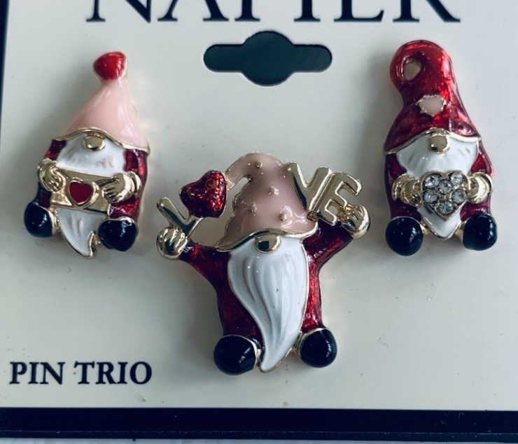 Trio Set of Gnomes with a Love / Vanentine Theme. Features & Accents: Multicolor, Set of 3 Individual Tac Pins. Each different, Valentine's Day, or great for any time of year. Condition. New. Still on Card. Smoke Free Home. Same day shipping if purchased by 3:00 PM, EST. International Sales Ship through Ebay International Shipping Program. Free Returns. We truly try to disclose all information on items we list. However if we miss something, please contact us before leaving negative feedback and allow us to resolve the problem or issue a returns. Your choice. Thank you.