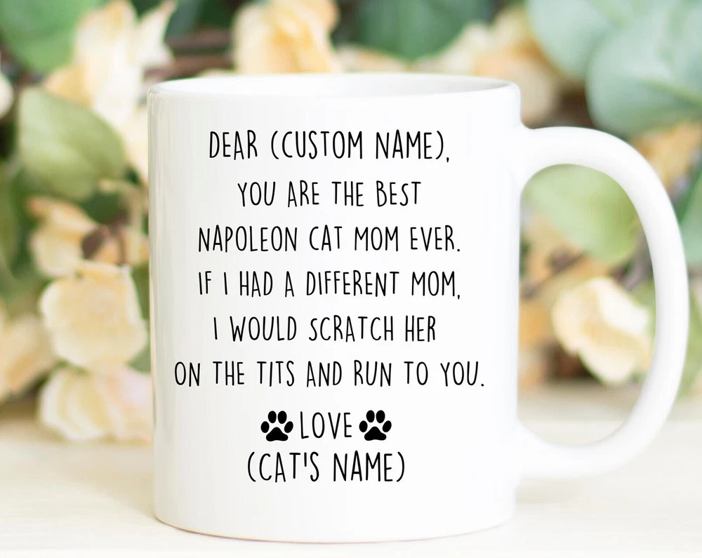Napoleon Cat Mom Birthday Gift Napoleon Cat Mom Christmas Gift Minuet Cat Mom Valentine Minuet Cat Mom Appreciation Napoleon Cat Mom Mug Product Details.. This high quality 11oz. ceramic white mug has a premium hard coat that provides crisp and vibrant color reproduction sure to last for years. Perfect for all hot & cold beverages. The highest quality printing possible is used. It will never fade no matter how many times you wash it. Material: 100% Ceramic. Print both sides. Dishwasher and Microwave Safe. High Gloss + Premium White Finish. Printed in the U.S.A. Personalized & Custom. We support personalized and custom mug to add custom, when placing an order, you can add notes to the "order note" in shipping address section. Also you can contact us directly via message. Shipping Info. Ready to ship in 1 to 2 business days, All products are made-to-order and proudly printed in the United States. Shipped by USPS and DHL, You will receive your order in 5-7 days. Replace & Refund. All products are defective during shipping broken, chipped will be replaced free of charge. You are not satisfied with the product, we will refund 100% money to you. If any other issues arise, please do not hesitate to message, we would be more than happy to assist you.