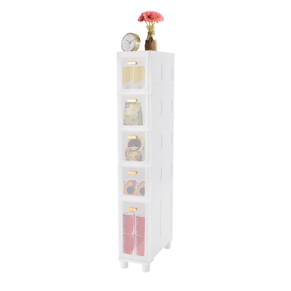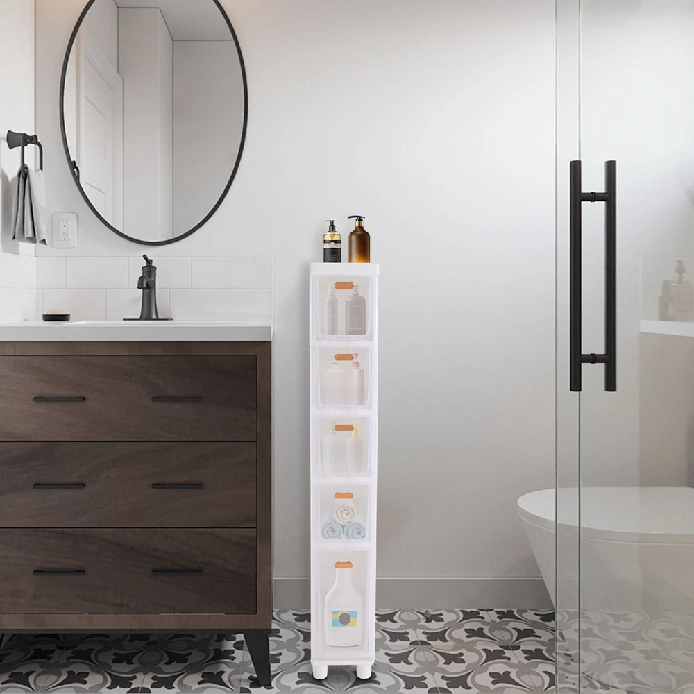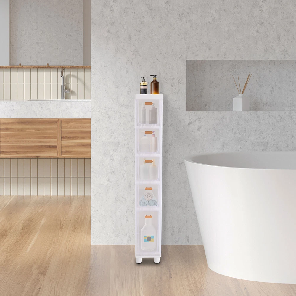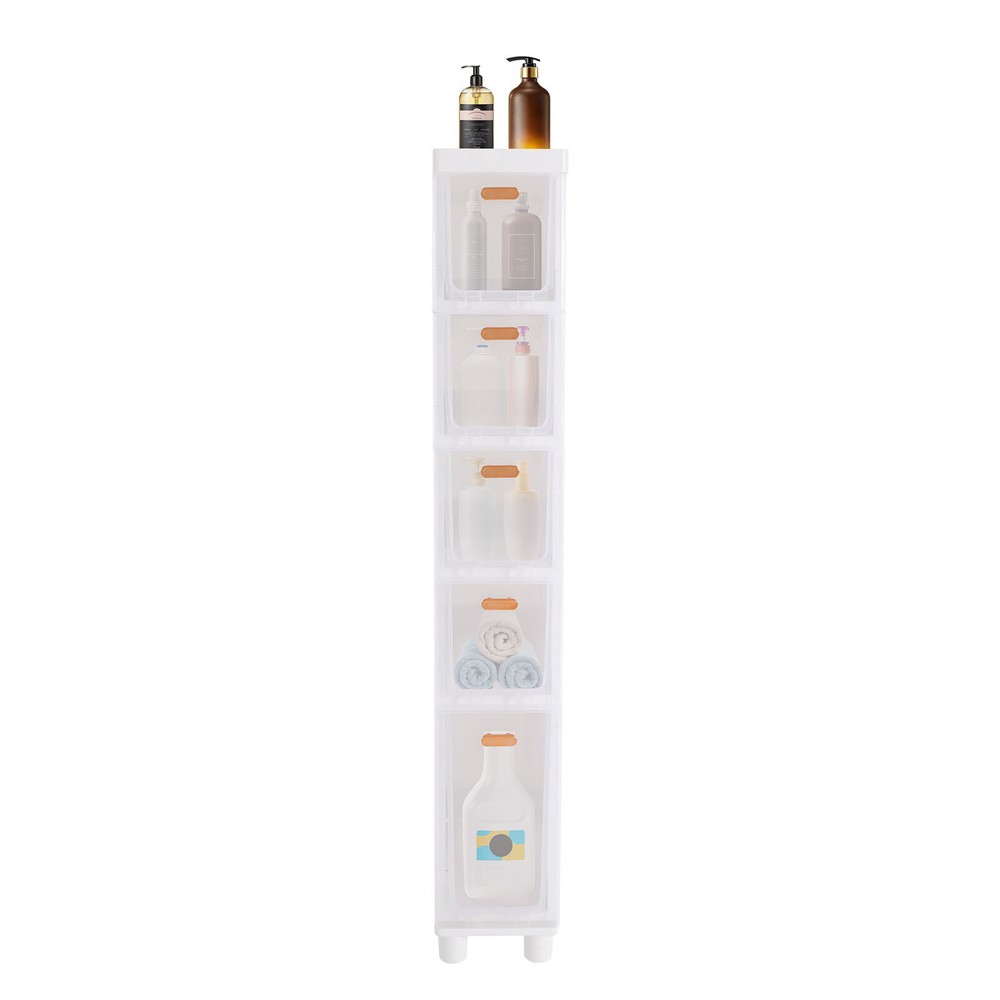 $ 35.73-Tier Rolling Storage Cabinet 41x17x78cm Semi-Clear Bathroom Organizer with 4 Wheels