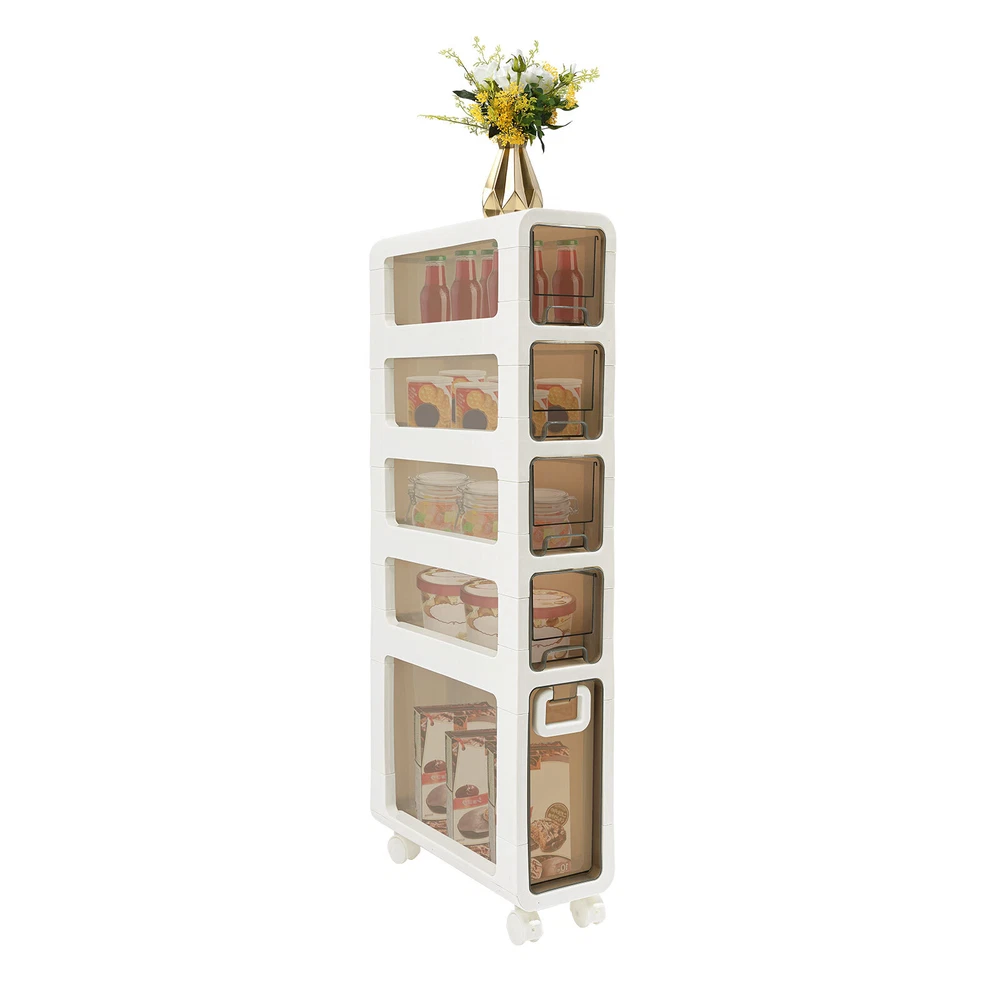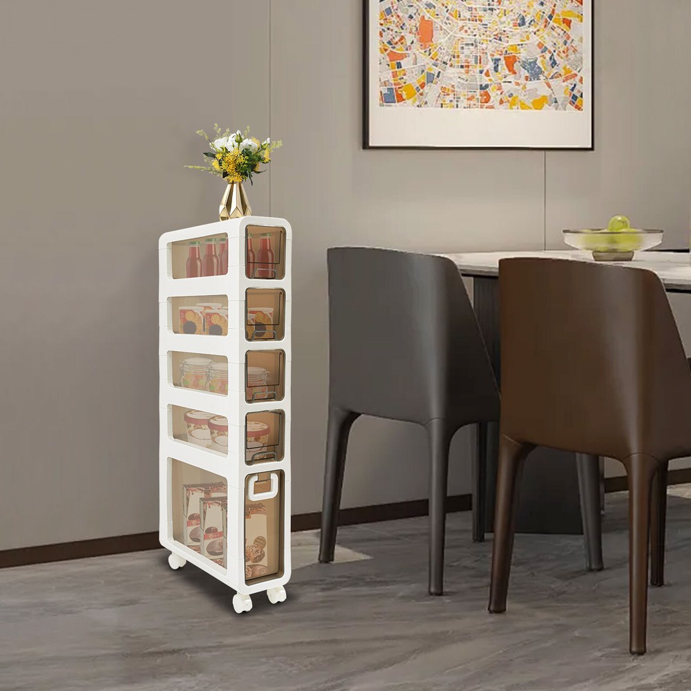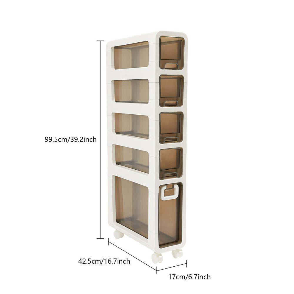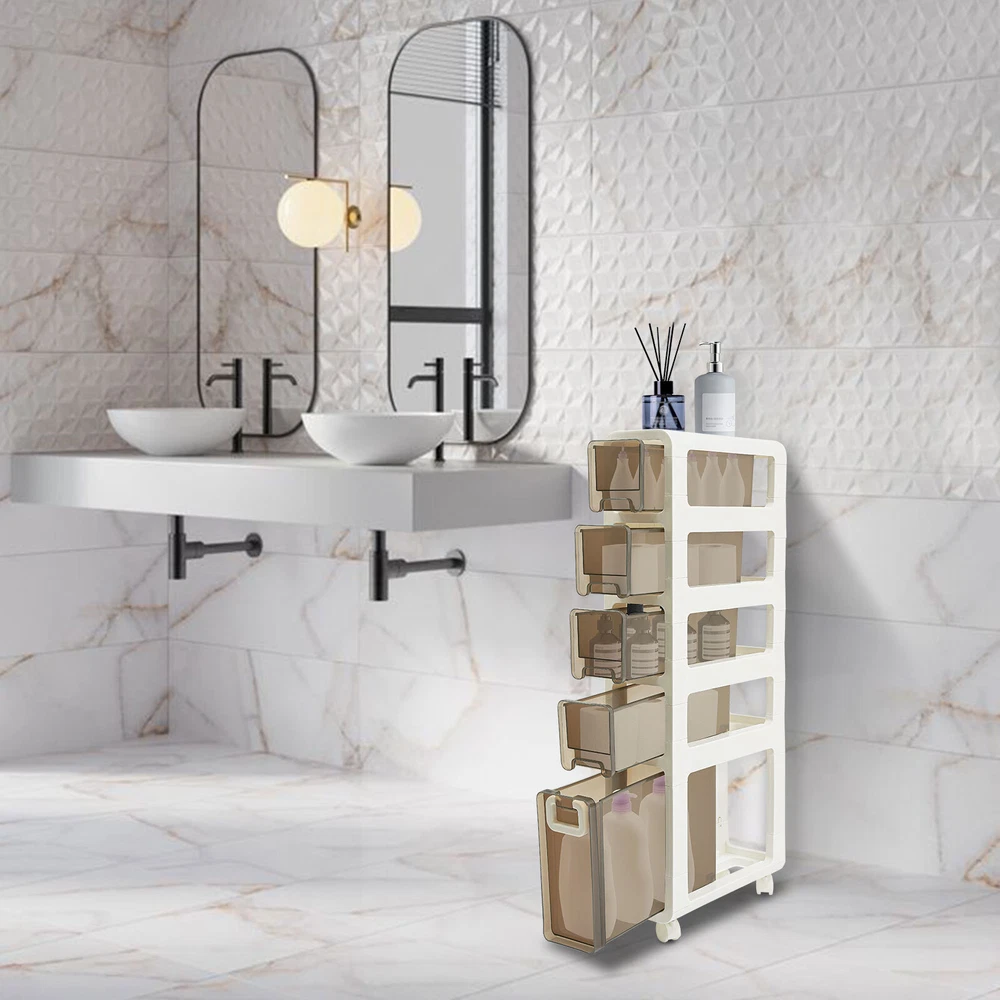 Narrow Slim Storage Cabinet, Bathroom Floor Cabinet Organizer, Home Decor Welcom to yiyahahaho Bathroom Floor Cabinet, Narrow Slim Storage Cabinet, Bathroom Organizer Description In daily life, a neat and organized space can make us feel relaxed and happy. Let's take a look at this bathroom floor cabinet , which is made of high-class PP , sturdy and durable. Large capacity and 5-tier storage space can meet your daily needs. The simple structure and smooth surface make it easy for you to clean. It is such a practical piece of home furnishing, bring it home soon! Key Features Sturdy and Durable: The premium PP makes this product wear-resistant , waterproof , moisture-proof, and less prone to deformation, ensuring long-term use in a wet environment. Storage Assistant: The 5-tier storage space and the elevate d tier spacing maximize the vertical space, and allow cosmetics, books, shower supplies, and seasoning bottles(all are not included) to be organized in a neat and orderly way to say goodbye to messy countertops. In addition, the top with non-slip stripes can hold items such as your alarm clock and potted plants (not included). Strong Load-bearing Capacity: High-class material and sturdy construction allow it to withstand heavy loads without deforming or falling off, meeting your daily needs. Thoughtful Design: The semi-clear drawer design allows you to easily find the it ems you need. The small wheels at the bottom of the drawer make the pulling process smoother and less prone to jamming, saving time and effort when retrieving items. Stylish Appearance: With a white and brown appearance, simple structure, and smooth lines, it shows a modern style and can decorate your bathroom well. Easy to Move: 4 universal wheels are convenient for you to move this product freely in your living room, bedroom, kitchen, bathroom, and so on. The brakes are also convenient for you to fix and prevent sliding. Space-saving: Its small footprint ( 16.7*6.7 inches) and tall and slim design make full use of vertical space, making it fit into relatively narrow spaces in the bathroom. Easy to Clean: Thanks to the smooth surface and simple structure, you can wipe the dirt from it with a wet cloth (not included). Ideal Gift: This product is stylish and high-class and can be used as an ideal housewarming, birthday, and holiday gift for parents, friends, and loved ones. Protective Package: To prevent damage to the product due to bumps in transit, we place foam to protect the product as much as possible. Details 4 Recessed Handles and 1 Large Handle: They can be great for helping you open or close 5 drawers. Built-in Buckles: The drawers are designed with built-in buckles, avoiding pulling them completely out of the storage cabinet. This design keeps the contents of the drawer safe. Raised Bottom: It allows the bottom of the product not to directly touch the ground, avoiding long-term moisture and inconvenient cleaning. Round Corners: It adopts an arc design, which can effectively care for your skin compared with the traditional square corners. Application This product is suitable for kitchens, bathrooms, bedrooms, laundry rooms, living rooms, dressing rooms, cloakrooms, hotels, and dormitories, and can be used to store food, spices, tableware, skincare products, books, magazines, newspapers , remote controls, toys, pet products, toiletries, cleaning products, laundry detergent, etc. Specifications Material: PP Color: White, Brown Style: Modern Shape: Rectangular Assembly Required: Yes Room Type: Bathroom Mounting Type: Freestanding Number of Tiers: 5 Number of Universal Wheels: 4(2 with Brakes) Gross Weight: 5.5kg/12.13lbs Net Weight: 5.23kg/11.53lbs Product Size: 42.5*17*99.5cm/16.7*6.7*39.2in Package Size: 99.5*16*46cm/39.17*6.3*18.11in Package Included 1* Bathroom Floor Cabinet 4* Universal Wheels Notes Please note that this product does not include cosmetics, condiments, etc. Please check the size carefully before ordering. Please allow the slight color difference caused by the shooting light and 1-3cm error due to manual measurement, and make sure you do not mind before you order. Payment Delivery details Terms of sales About us Contact us Payment We accept ebay payment 。 Fees such as import duties, taxes are not included in the item price or shipping costs. These charges are the buyer's responsibility. Delivery details Shipping: 2-9 working days to: USA Terms of sales We maintain high standards of excellence and strive for hundred percent customer satisfaction. Feedback is very important to us. We hope that you contact us immediately before you give neutral or negative feedback, so that we can address your concerns. It is impossible to address issues if we do not know about them! About us Your satis faction is our ultimate goal. We work hard to earn your trust and future business. Our certified technicians have tested each item before shipping. The unit comes with 1 year limited warranty on all manufacturing defects. a) If you receive a defective item, you may return it or ask for a discount. Please contact us within 14 days after you receive the package. b) What you returned must be intact and in its original packaging as re? u. Customer is responsible for shipping costs of the returned item. c) We will cover the cost of shipping back t with the shipping rate indicated in the registration page. We will send you a new unit or refund the full payment you paid. Thank you. Contact us Business Hour Business Hour: Monday To Friday: 8:30 AM to 5:00 PM (Beijing China time) Due to time zones, our reply to your questions may not be immediately. But within above working time, we will reply your email within 24 hours. If it's non-workdays, please kindly be patient and wait till Monday. Please contact us with ebay message. Please feel free to contact us if you have any questions. Monday To Friday: 8:30 AM to 5:00 PM (Beijing China time) Due to time zones, our reply to your questions may not be immediately. But within abo