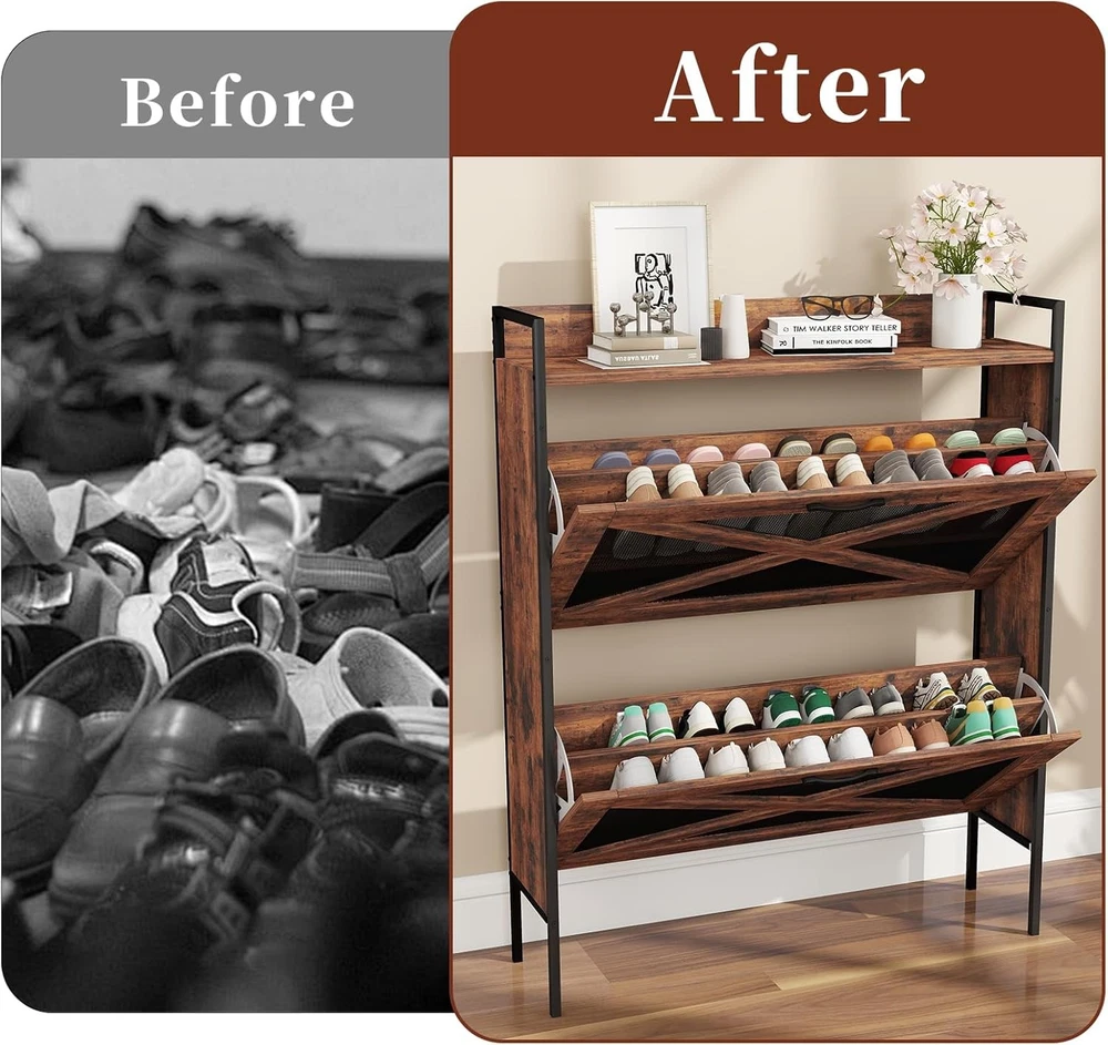 $ 89.91Slim Farmhouse Shoe Cabinet Holds 24 Pairs Including Size 13 with Storage