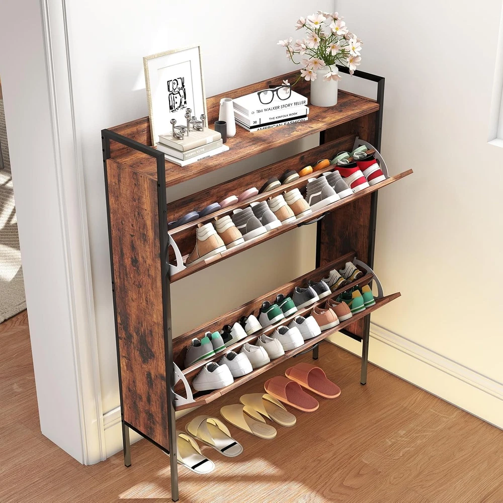 3-Tier Flip-Drawer Shoe Storage Cabinet Holds 24 Pairs