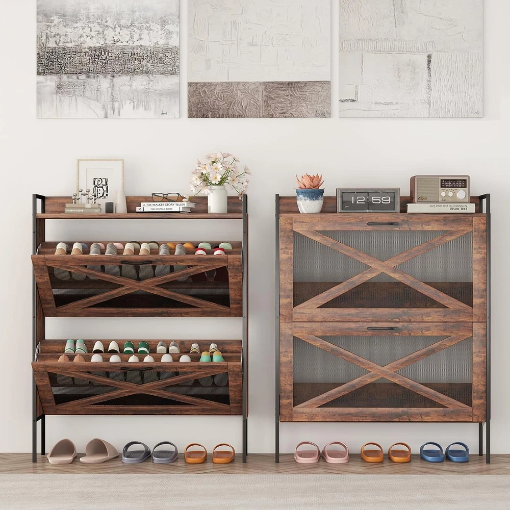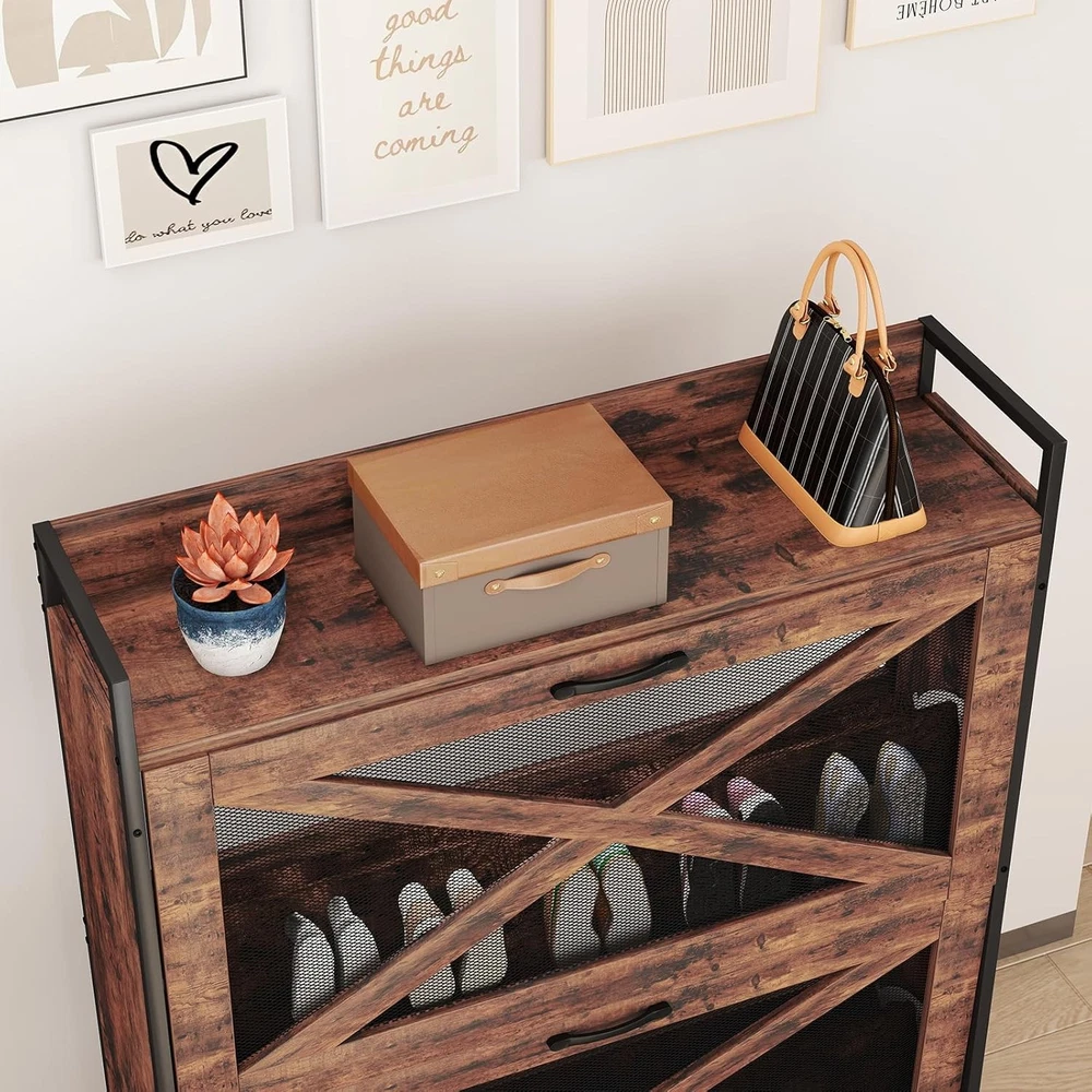 $ 73.73Farmhouse Narrow Shoe Storage Cabinet with 2 Flip Drawers Holds 12 Pairs