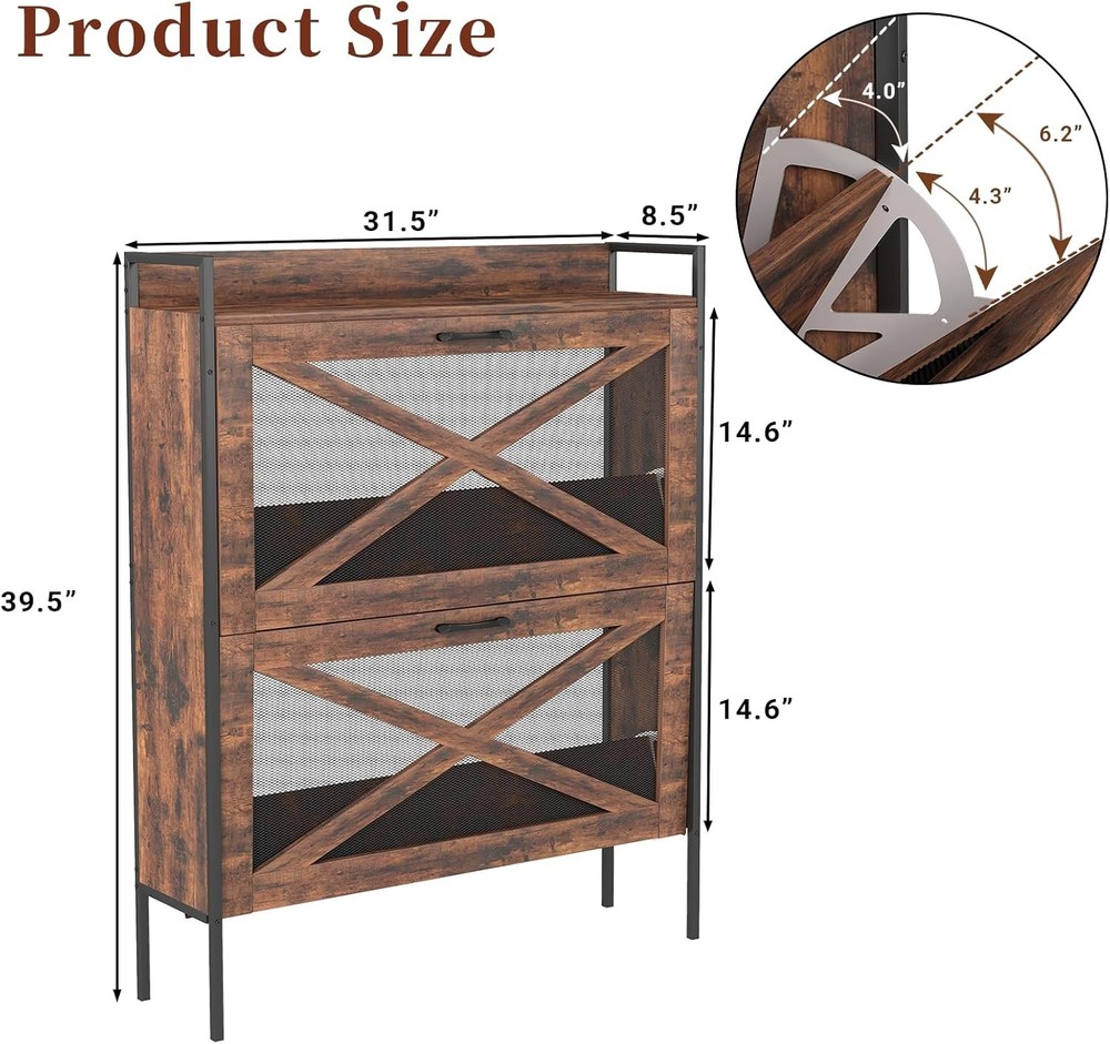 Space-Saving Solution: This slim shoe cabinet is designed to fit perfectly into tight spaces. Measuring 39.5" high x 31.5" long x 8.5" wide, it provides generous storage without occupying too much room. Perfect for small entryways, hallways, or apartments, it helps you make the most of your space. Efficient Storage: Equipped with two flip drawers, this shoe cabinet features adjustable and removable panels to store various kinds of footwear, from sneakers to footwear and high heels. Its versatile design also lets you store slippers, keys, bags, and decorative items, reducing mess while improving organization Lumiskin Shoe Cabinet Storage For Entryway - Wood Narrow Shoe Storage Cabinet With 2 Flip Drawers & Mesh Doors, Adjustable Shelves, Slim Shoe Cabinet For Entryway, Hallway, Rustic Brown Space-Saving Solution: This slim shoe cabinet is designed to fit perfectly into tight spaces. Measuring 39.5" high x 31.5" long x 8.5" wide, it provides generous storage without occupying too much room. Perfect for small entryways, hallways, or apartments, it helps you make the most of your space. Efficient Storage: Equipped with two flip drawers, this shoe cabinet features adjustable and removable panels to store various kinds of footwear, from sneakers to footwear and high heels. Its versatile design also lets you store slippers, keys, bags, and decorative items, reducing mess while improving organization Stylish and Versatile: With its rustic brown wood finish and industrial-style mesh doors, this farmhouse shoe cabinet brings a distinctive flair to any space. Its simple, refined design complements a broad range of home decor styles, keeping your shoes neatly organized and hidden from view. Durable and Safe: Built from engineered wood and a sturdy steel frame, this hidden shoe cabinet is both durable and stable. For added safety, it includes an anti-tip kit, allowing you to securely fasten the cabinet to the wall, making it an excellent choice for homes with children or pets. Easy Assembly: Assembling this shoe flip cabinet is quick and straightforward. The product includes clear step-by-step instructions and well-organized parts, so you can set it up without difficulty. Slim Shoe Cabinet for Entryway ?C Space-Saving Storage with Flip Drawers & Mesh Doors Maximize your storage without sacrificing space with this slim shoe cabinet. Designed to fit perfectly in small entryways, hallways, or apartments, this compact piece provides ample space for organizing shoes, slippers, and accessories. Specifications: Item: slim shoe flip cabinet Main Color: Rustic Brown Main Material: Particle Board Size: 31.5 in (L) X 8.5 in (w) x 39.5 in (H) Item Specifics Brand Unbranded Type Shoe Cabinets Item Weight 28 Pounds Color Rustic Brown Product Dimensions 8.5"D x 31.5"W x 39.5"H Special Feature Anti-Tipping, Adjustable Shelf Mounting Type Wall Mount Color Rustic Brown Product Dimensions 8.5"D x 31.5"W x 39.5"H Special Feature Anti-Tipping, Adjustable Shelf Mounting Type Wall Mount Room Type Entryway, Hallway Door Style Flip Included Components Shelves Finish Type Rustic Size 31.5 inches (W) x 8.5 inches (D) x 39.5 inches (H) Shape Rectangular Number of Shelves 1 Item Weight 28 Pounds Base Type Legs Installation Type Freestanding Top Material Type Engineered Wood Assembly Required Yes Frame Material Alloy Steel Is Customizable No Number of Levels 3 Item Weight 28 pounds Country of Origin China Item model number FGSHOEGUI Item Height Does not apply:Does not apply Payment We accept PayPal payment,PayPal Credit,Credit card or debit card and so on. Payment should be completed within 4 (Four) days of auction closing. Or unpaid dispute will be filed for closing auction. We will leave a positive feedback immediately after payment is received. We appreciate a positive feedback as much as you do. If for some reason there is any issue with the purchase, please contact us prior to leaving feedback, we will be glad to work together and provide a satisfying solution. Shipping 1.We usually ship within 3-5 business days of receiving cleared payment., and we provide Free Shipping for most items. 2.Fast shipping is very important for us. We use multiple fulfilment warehouse around the United States. We only ship to the lower 48 States and do not ship to PO Boxes. 3.Please make sure the correct Ship-To address is entered before checking out. Once the payment is completed, you may not be able to change the shipping address. We shall not be held responsible for any wrong or undeliverable addresses. Returns 1.We provide 14 days return upon the buyer received the item. It must be in good condition and you will undertake the returned shipping cost. 2.We will offer replacement or refund for all DEFECTIVE items (not including damage resulting from accidents / abuse / misuse / improper care), but a photo is needed for our reference beforehand and should be reported to us within 7 days from purchase date. 3.All items are brand new and have been passed the quality check. All are packed in a good condition before item dispatch. Contact Us 1.Dear customers, we appreciate your business, our aim is to provide Top Level Customer Service,if you are satisfied with our service, please leave us a 5 star positive feedback . 2.If you have any question or concern about your eBay order, please feel free to let us know. We will try our best to reply all questions within 24 hours. However, no answer will be replied during weekends or holidays. Please allow up to 48 hours delay in receiving our response after long weekends or holidays. 3.Please via eBay Message for a solution for resolutions before leaving negative feedback, we strive to providing the greatest service and bringing the highest satisfaction to all of our customers. Lumiskin DESCRIPTION PAYMENT SHIPPING RETURN POLICY CONTACT US Shop Category Store Home Other Hot Item For Fanttik Slim V10 Mix/Slim V9 Mix Cordless Car Vacuum Hard Case, Fanttik Car USD 32.01 Socool Portable Waist Fan 5000Mah Recharge